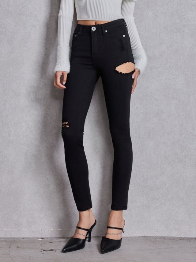 【GYDA】ハイウエストウエストクロススキニーデニムパンツ