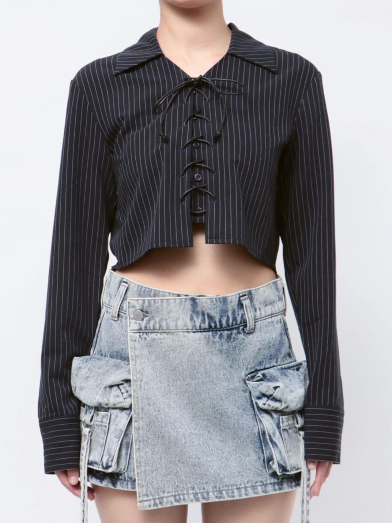 カーゴラップショートパンツやカットオフジャストウエストジーンズのようなデニムアイテムとのスタイリングがおすすめです。