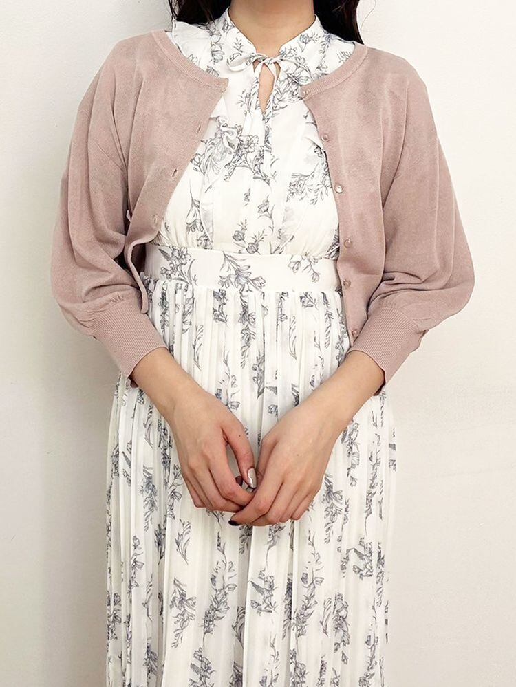 シャリっとした軽やかな素材のニットカーデは、春夏シーズンに大活躍間違いなし!他のデザインの邪魔をしないシンプルなカーデは、1枚持っておきたい万能なアイテムです。シアー感が涼しげで、透けて見える肌が女性らしい印象に。インナーキャミの上にトップスとしてレイヤードし、オフショルにして着るのもお勧めです◎▼スタイリング ジャンスカやノースリーブのトップス・ワンピースにさらっと羽織れる万能なカーデ。軽くてコンパクトなので、冷房対策として持ち運びにも最適です。