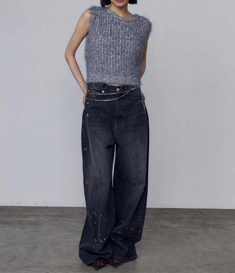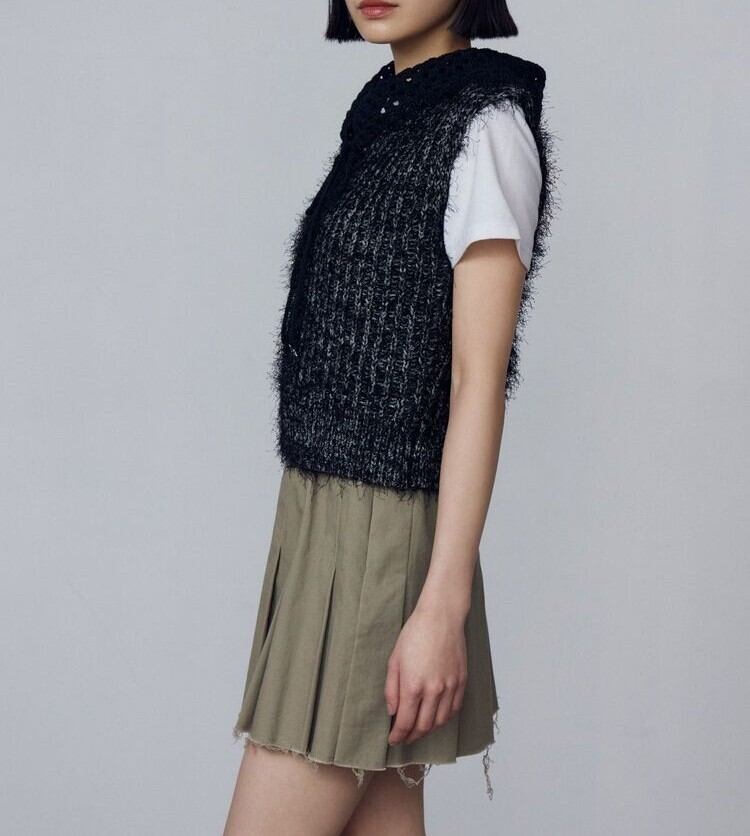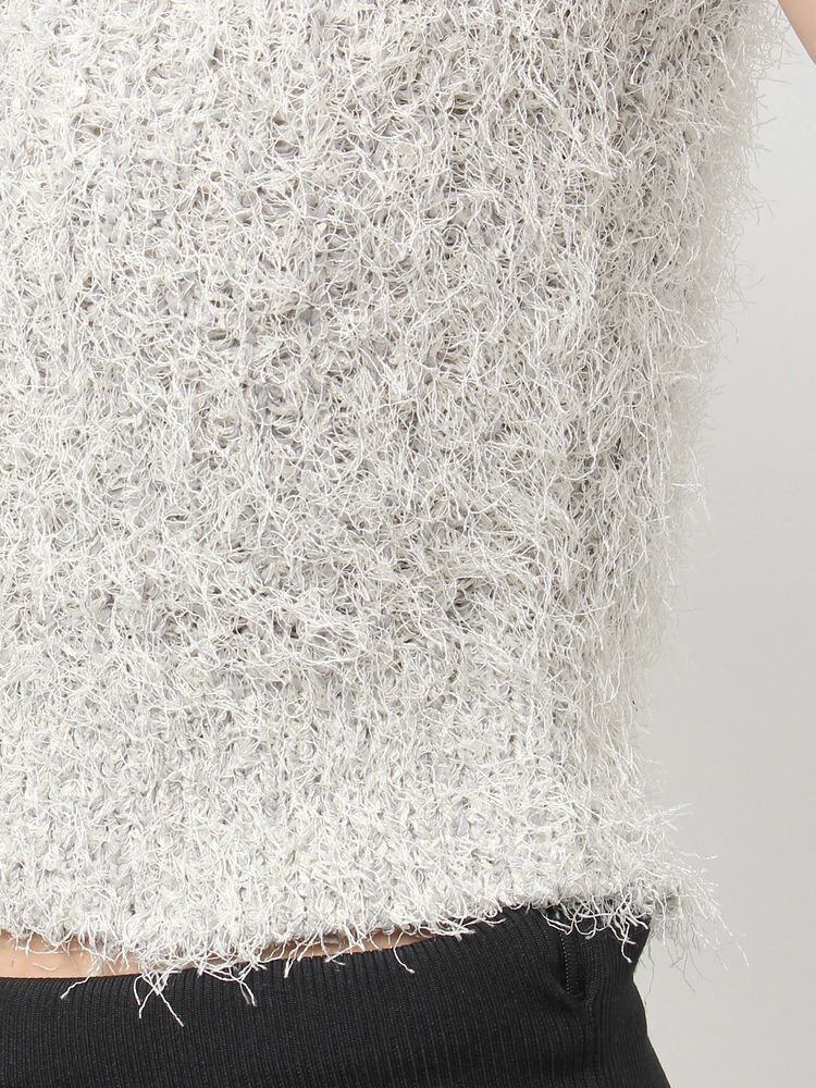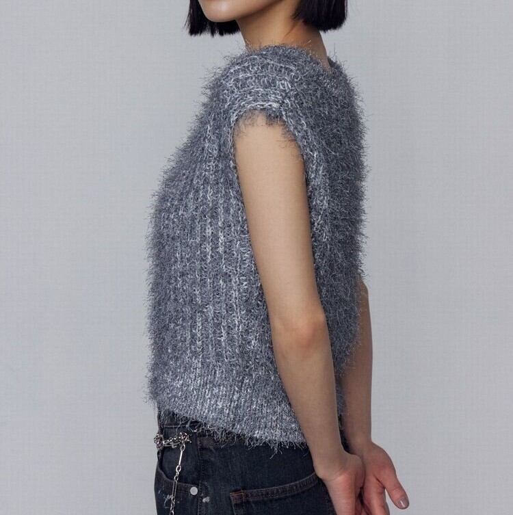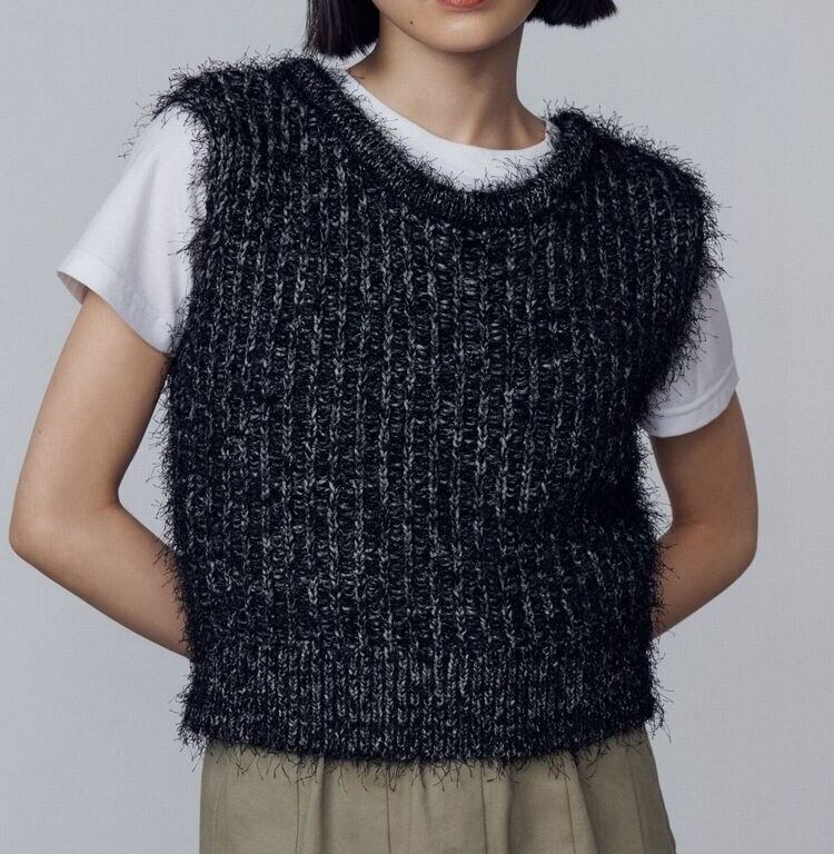 細いシャギー糸と太い糸をMIXさせた編地が印象的なニットです。