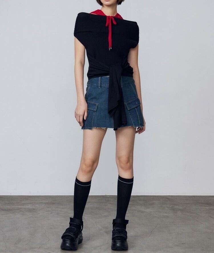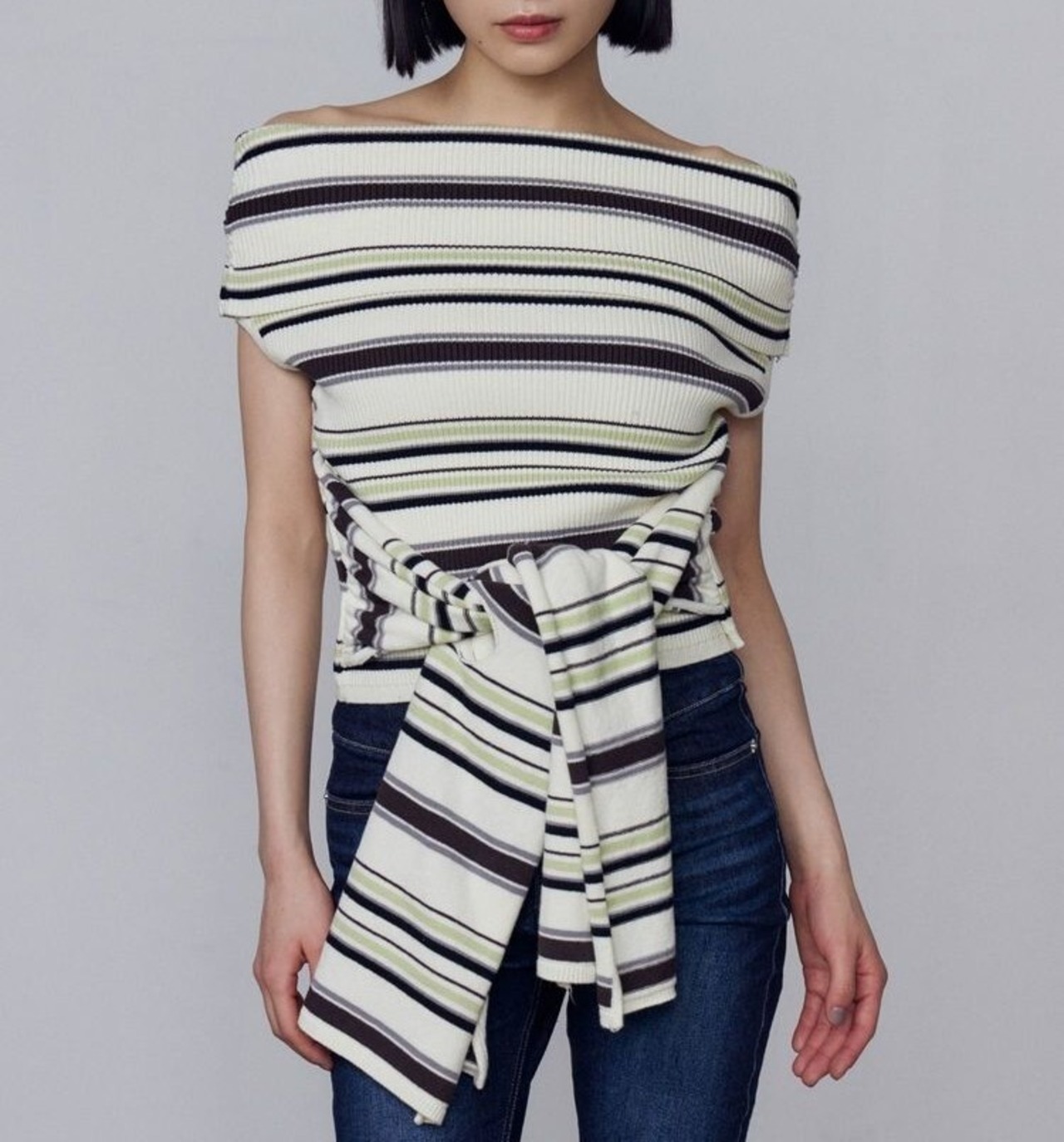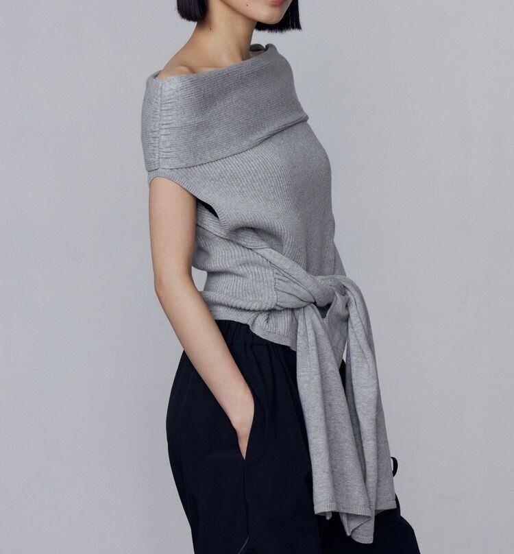 ウエストのタイデザインが目を引くリブニットトップス!
