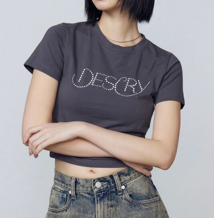 パールロゴでトレンド感のあるショートTシャツ