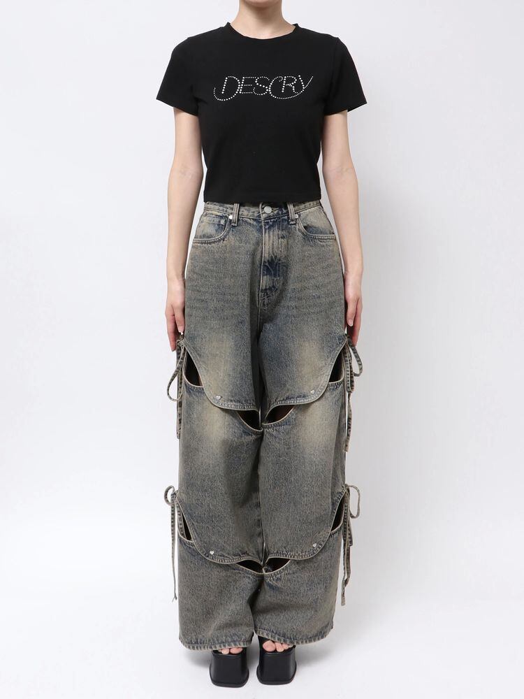 女性らしいデザインなので、カットアウトルーズジーンズを合わせカジュアルダウンしたスタイリングがイチオシです。
