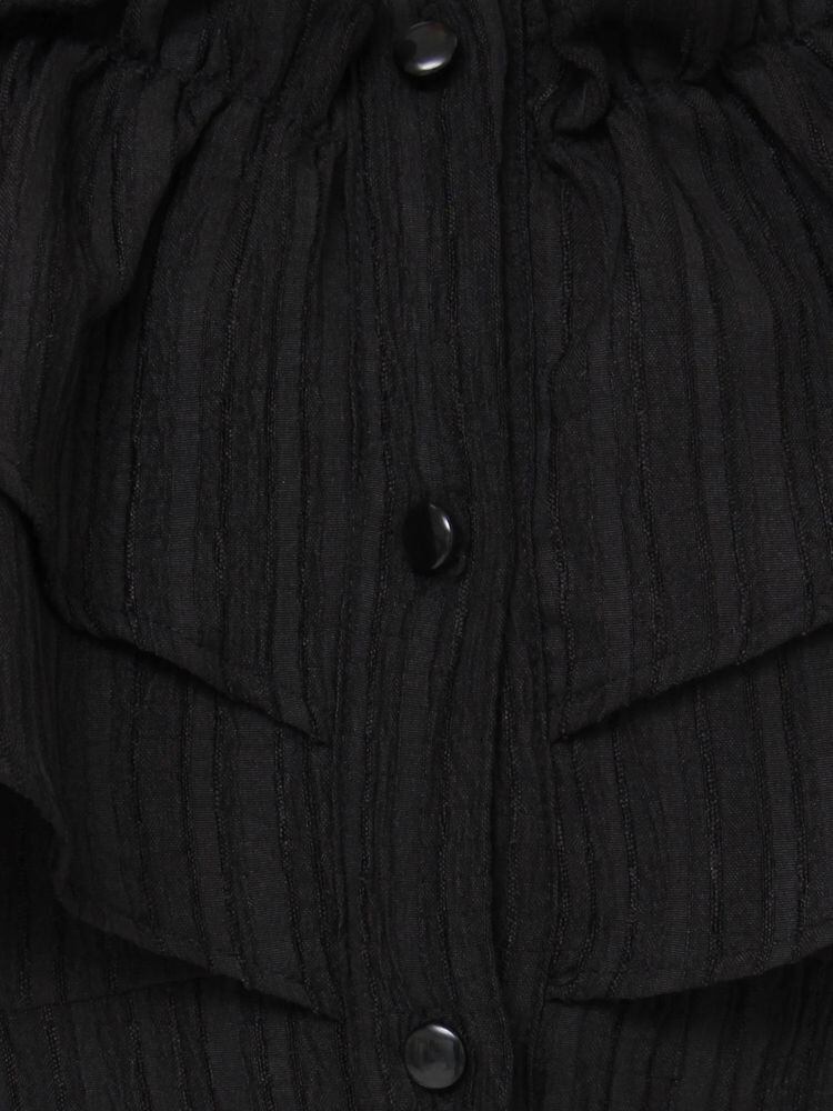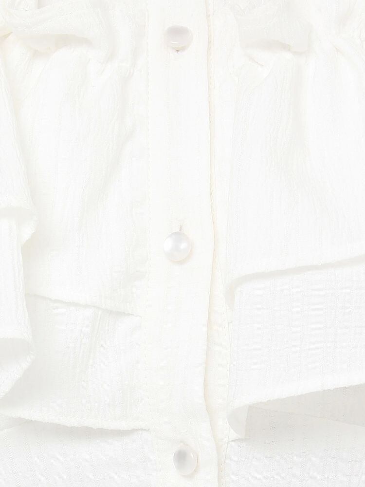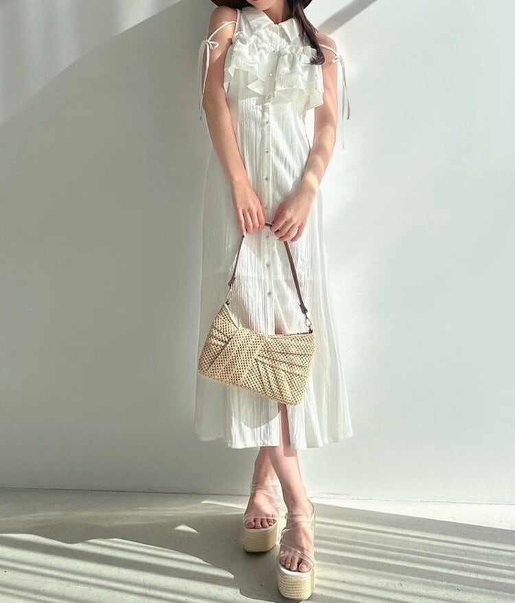 バストのラッフルデザインが目を惹くシャツワンピース。
