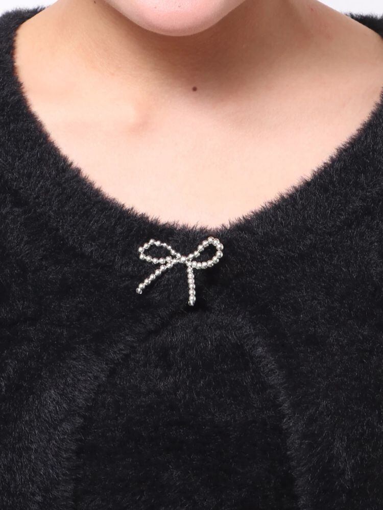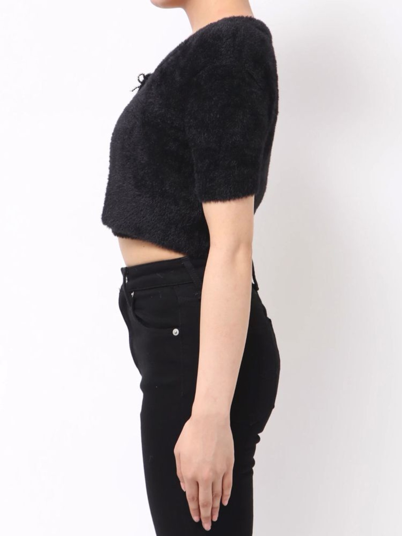 半袖カーディガンは、メタルのリボンチャームをポイントに付けているので1枚で存在感のあるアイテムです。