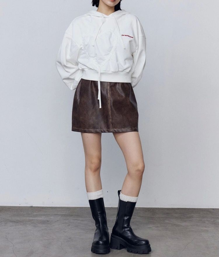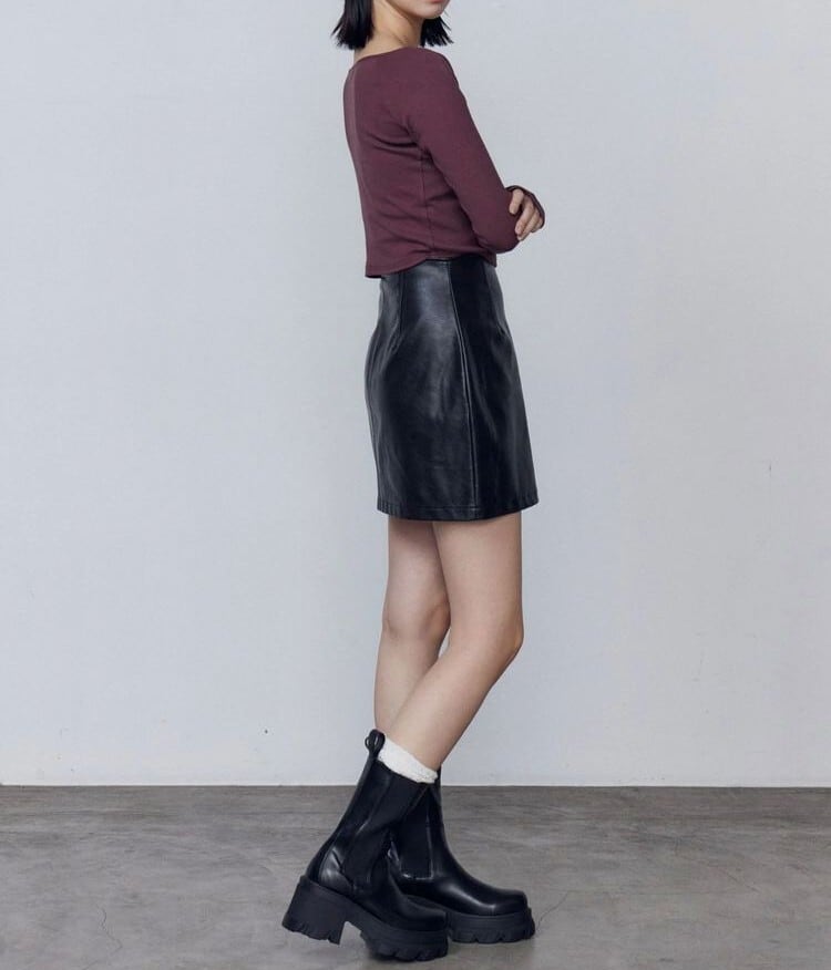 合皮の無地ブラックとブラウンは加工感を入れ、合わせるだけでトレンド感もプラス出来るようにしています。
