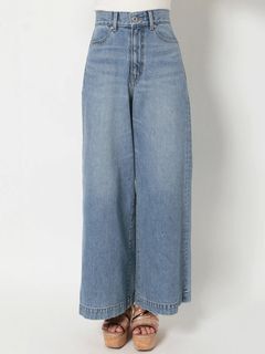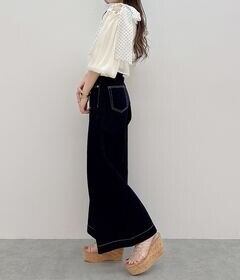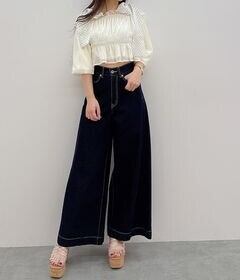 たっぷり広がるフレアシルエットがスカート見えするフレアデニムパンツ。