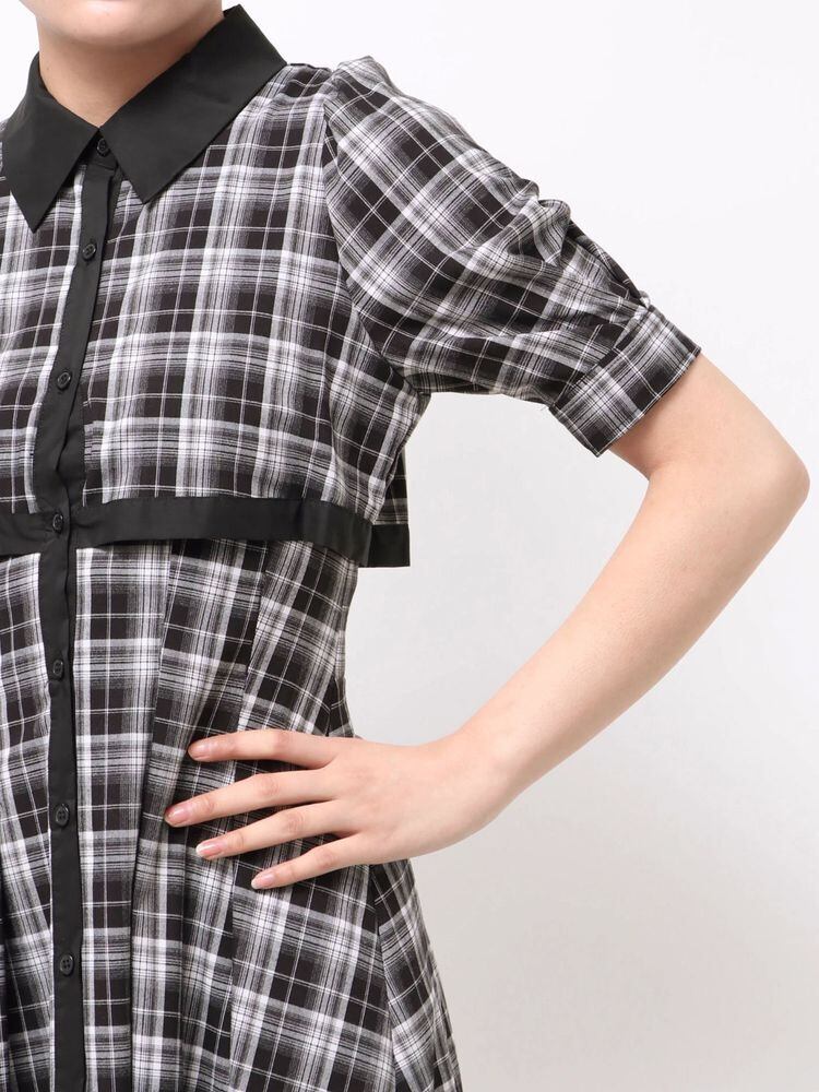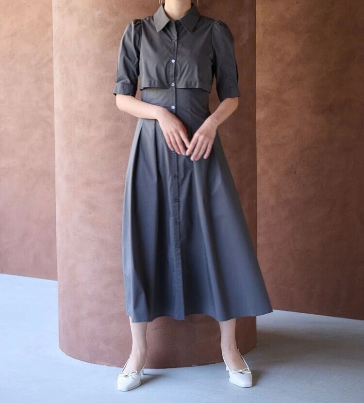 クロップドシャツをレイヤードしたようなデザインがポイントのシャツワンピース。