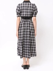 シャツワンピースですが、スタイルアップするようにウエストはコルセットのようにタックで美シルエットにし、レイヤード風のデザインが、よりウエストを細見えさせてくれます。