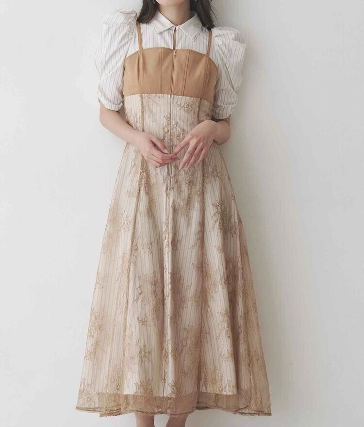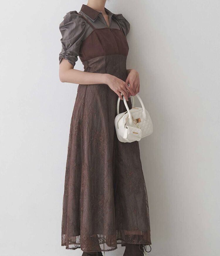 レースとストライプの組み合わせがNEWな見え感のワンピースです。