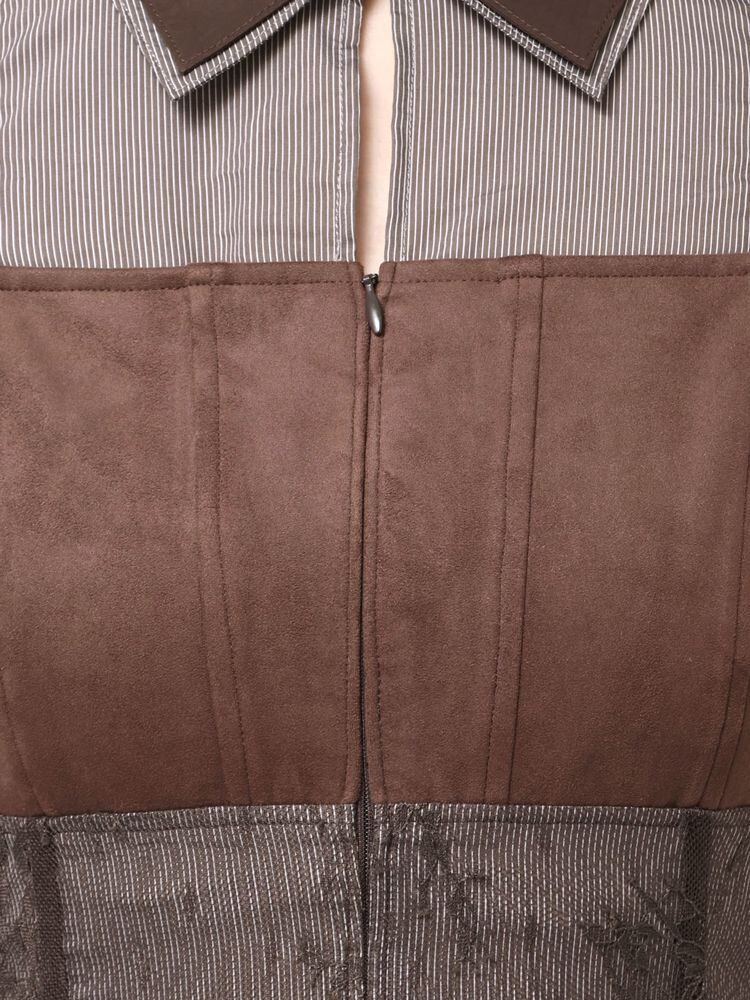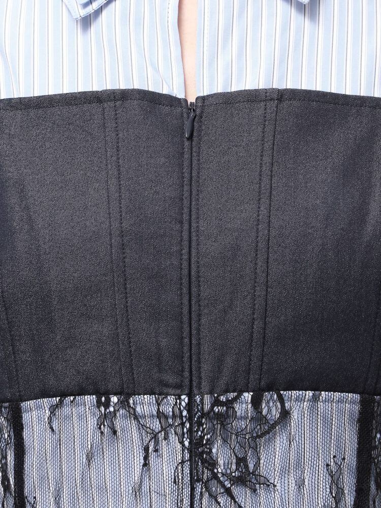 ビスチェ上のシャツ部分はスリット開きにしており、台衿部分のホックでデコルテを見せてネックレスやチョーカーを見せることも◎