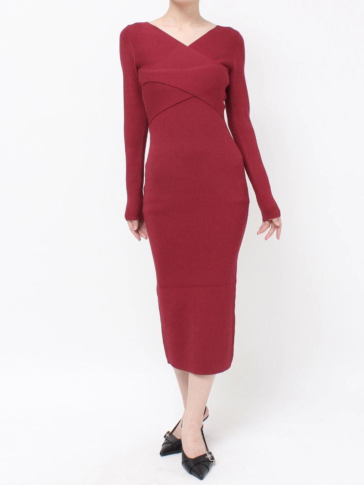リブニット素材で軽く、着心地抜群のニットワンピース。