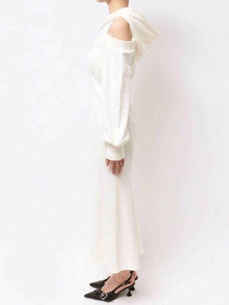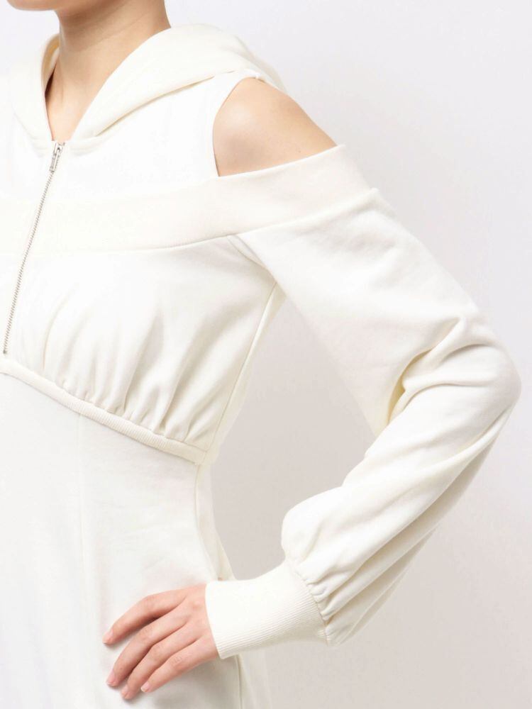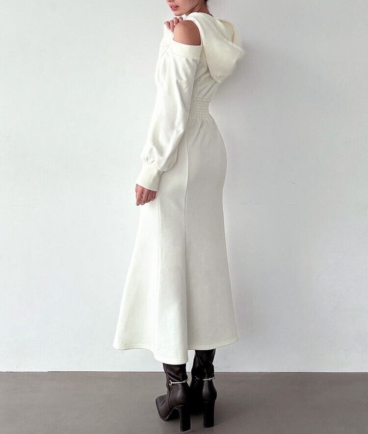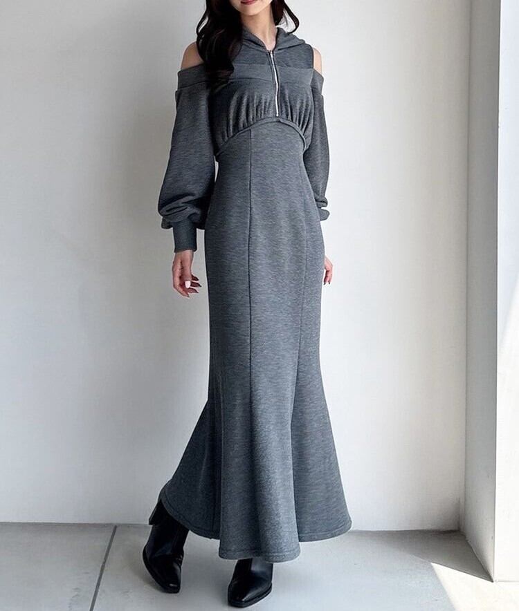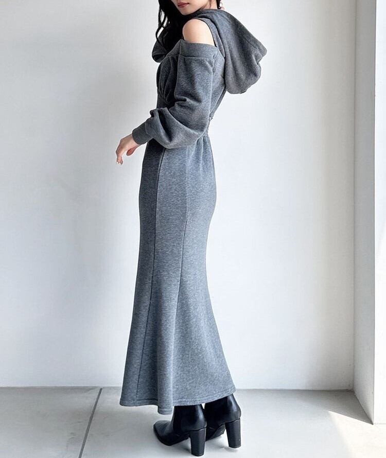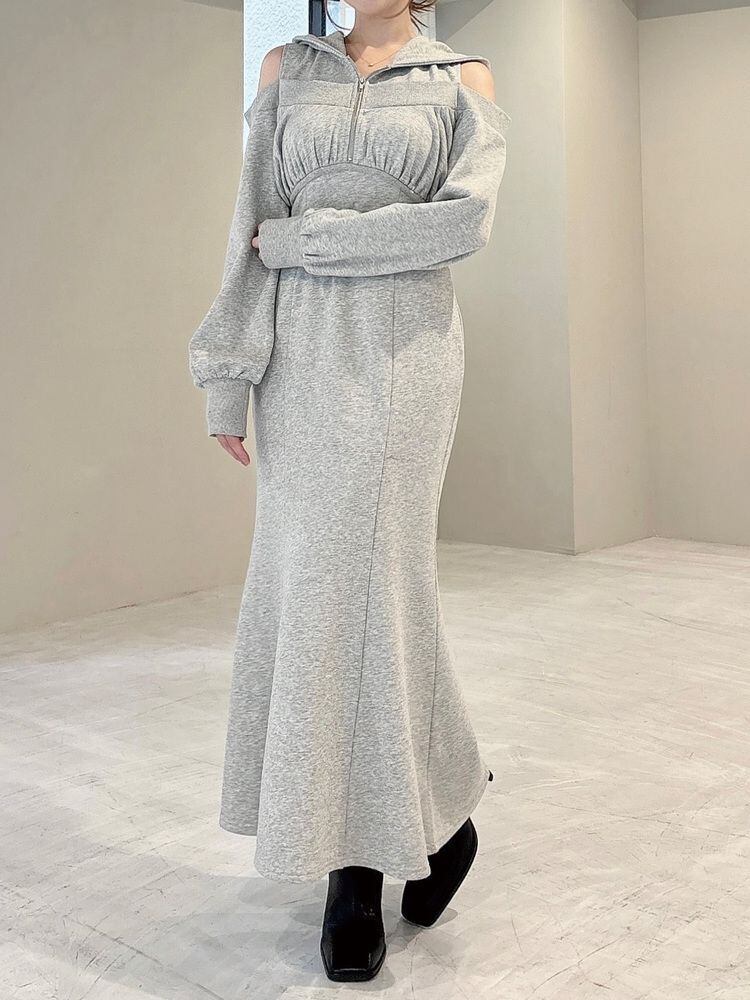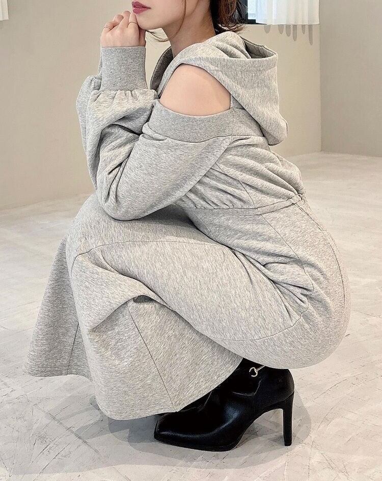 いつものスウェットフーディーワンピースよりキレイ目に着れるデザインです。