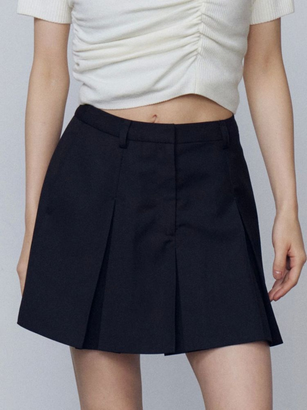ショート丈のトップスを合わせてスタイルアップした着こなしはもちろん、
