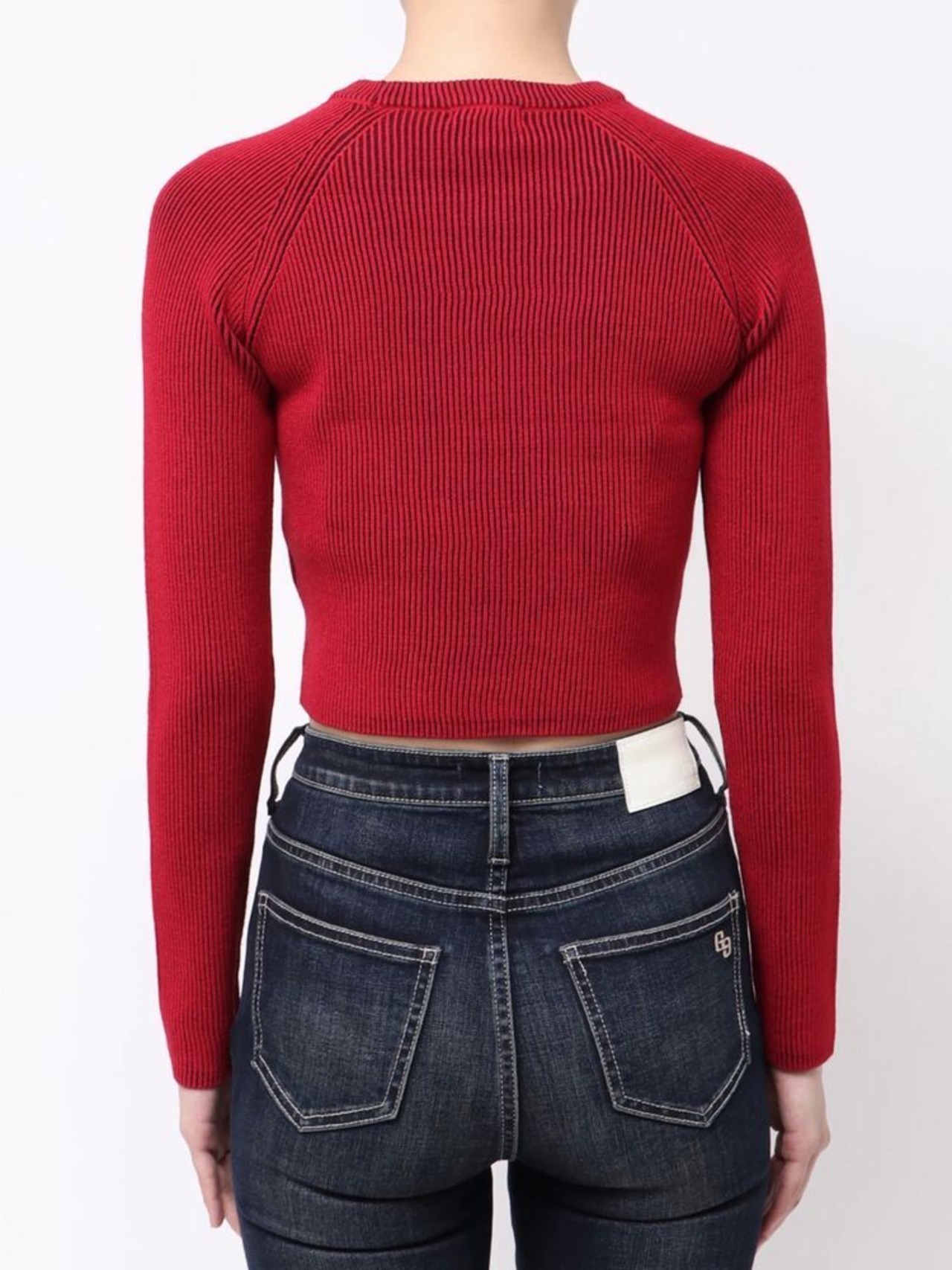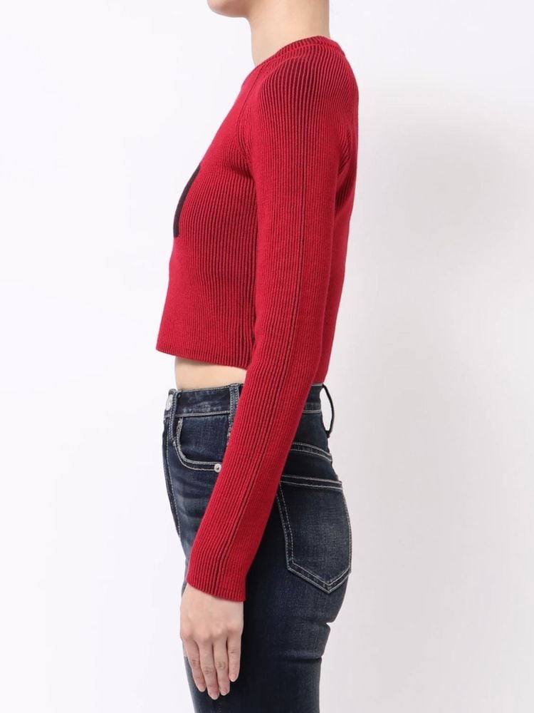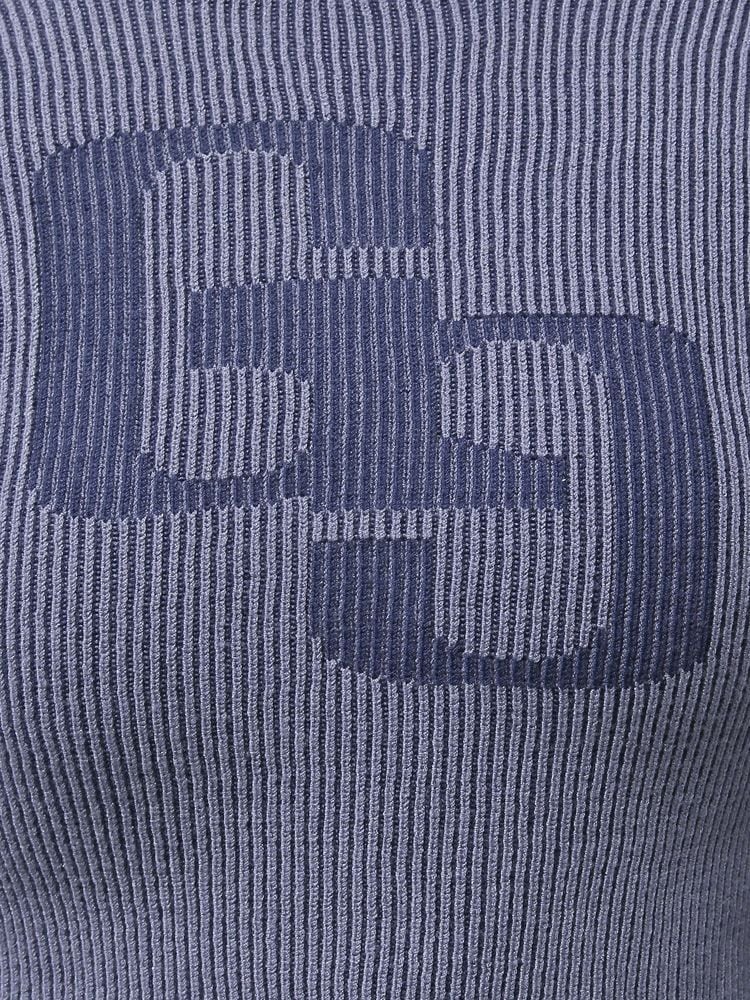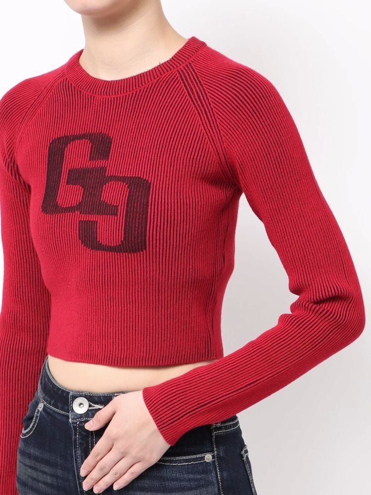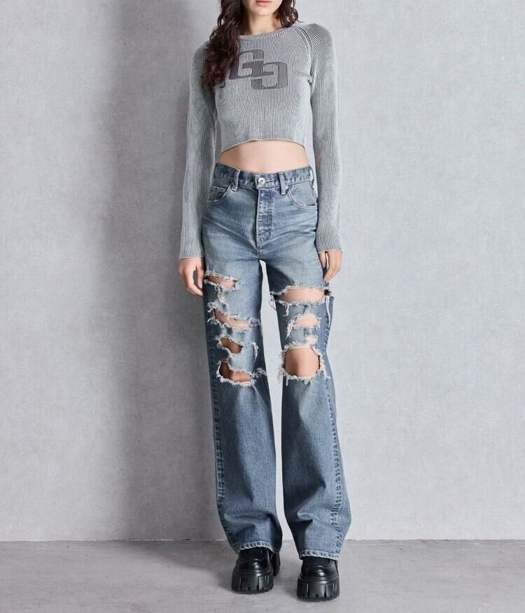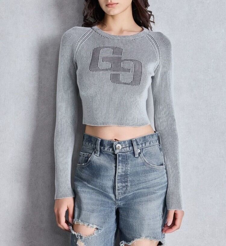 2色のカラースキームで、ブリーチ加工をした見え感になるリブの編地がポイントのニットアイテム。フロントGGをジャカードで施し、インパクト◎