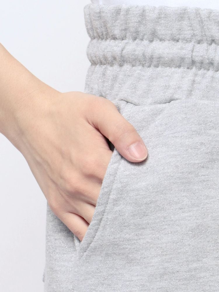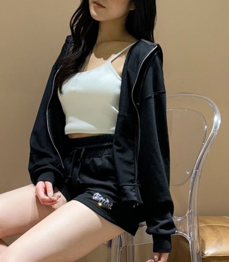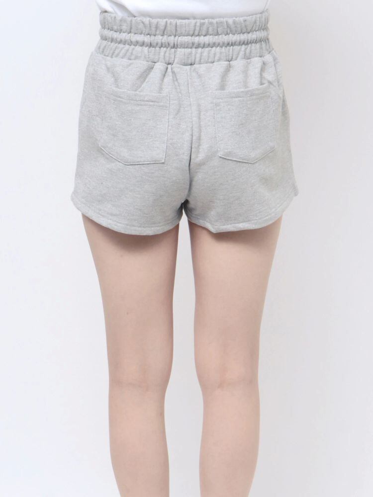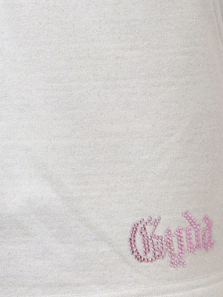 右裾にラインストーンでパーカーとお揃いのGYDA(ジェイダ)ロゴが入ったラメ素材のショートパンツです。