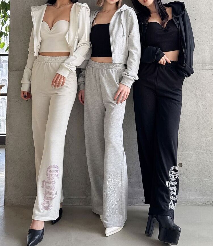 大人気のラメ素材×ラインストーンロゴのフルレングスパンツが登場!