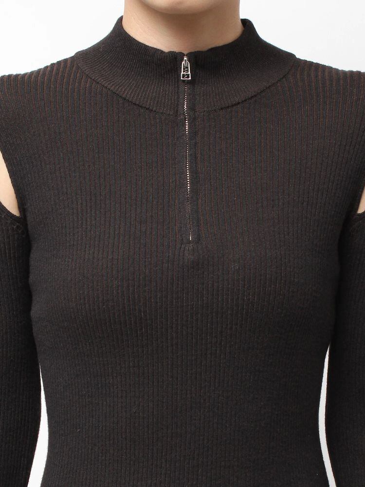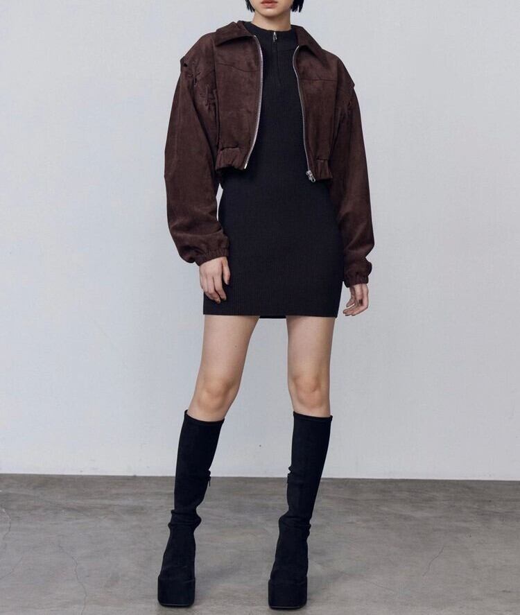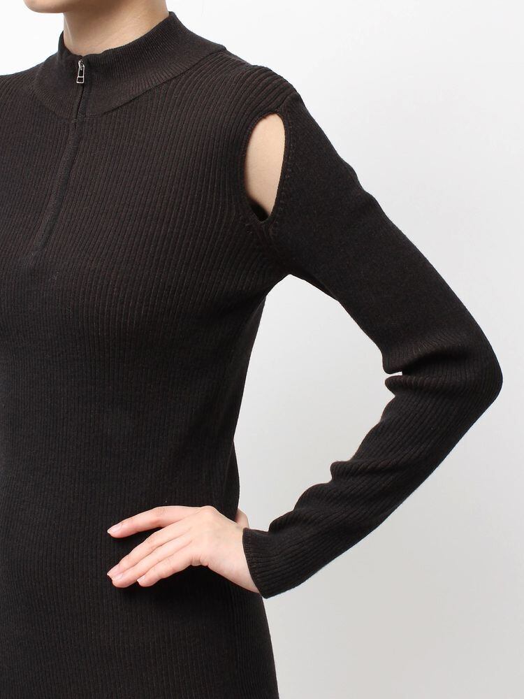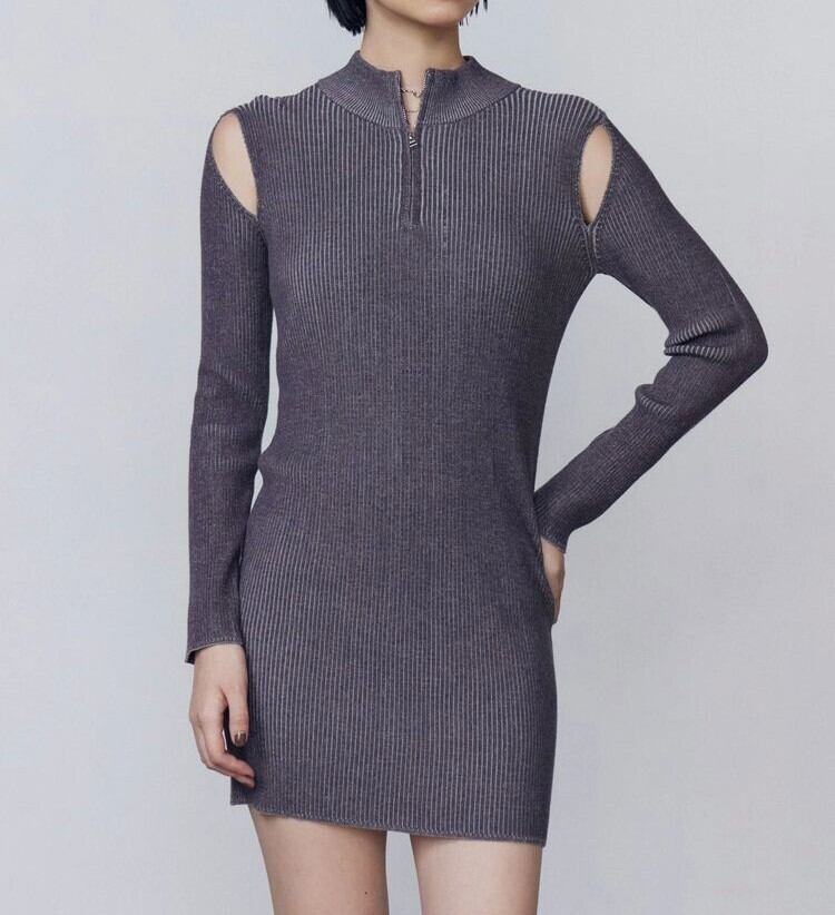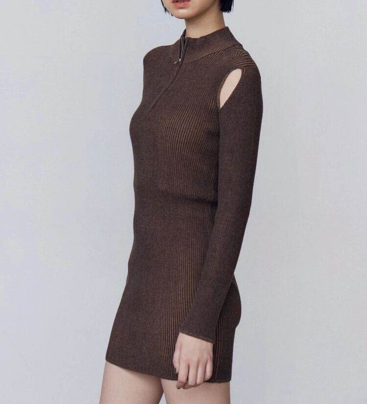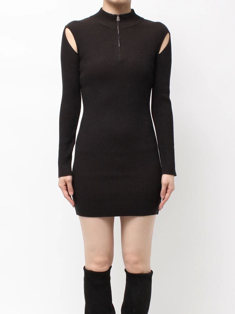 ジップとカットアウトで魅せるエッジの効いたニットワンピース