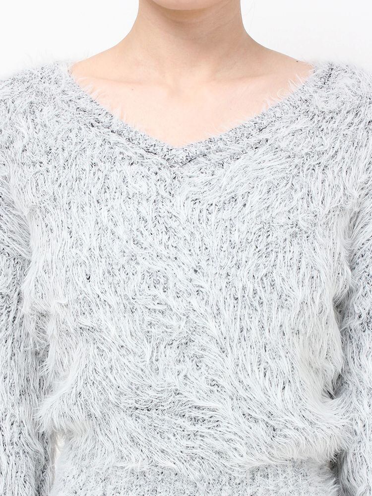 Vネックなので顔周りはすっきりと見えるのもポイント◎