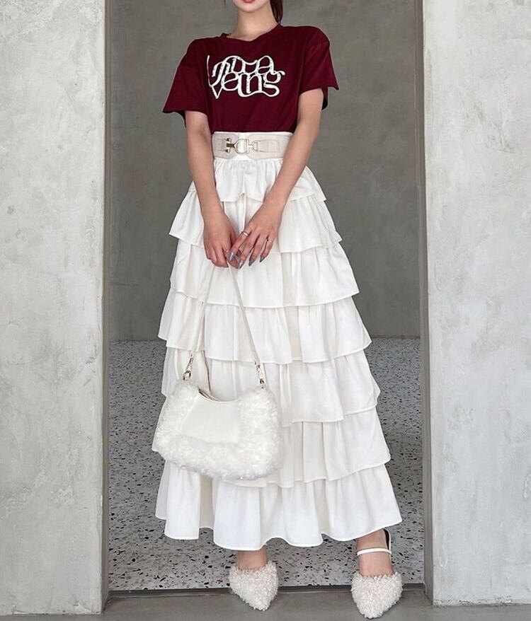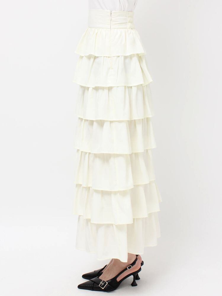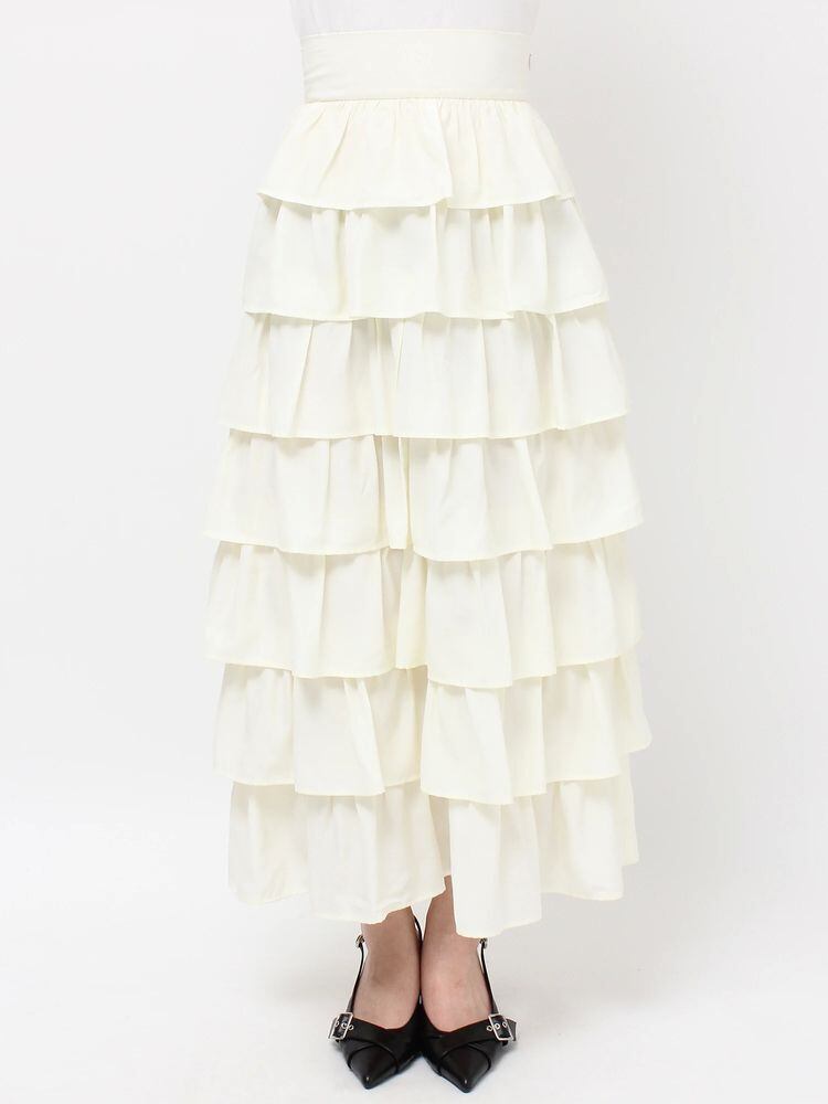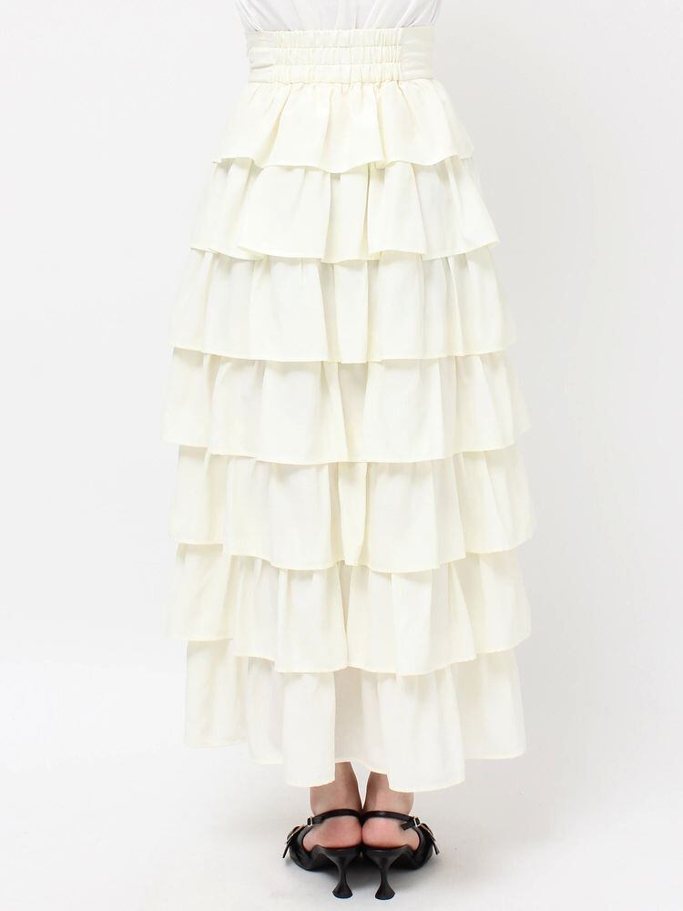 ボリューム感のあるフリルを重ねた目を惹くスカート