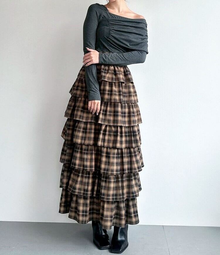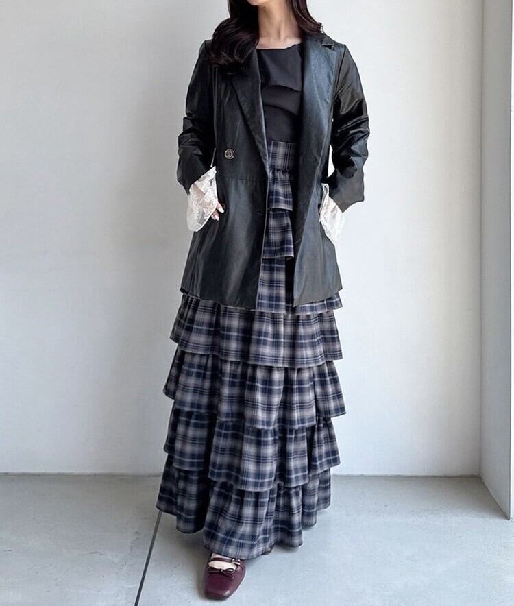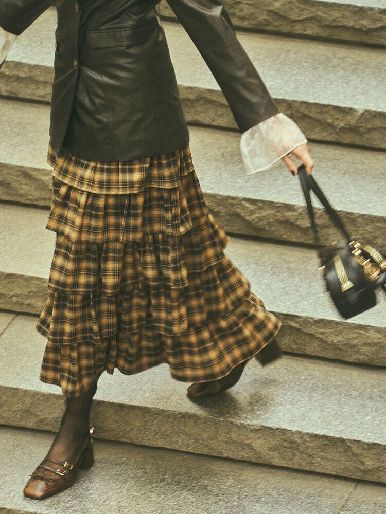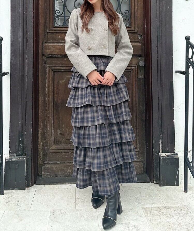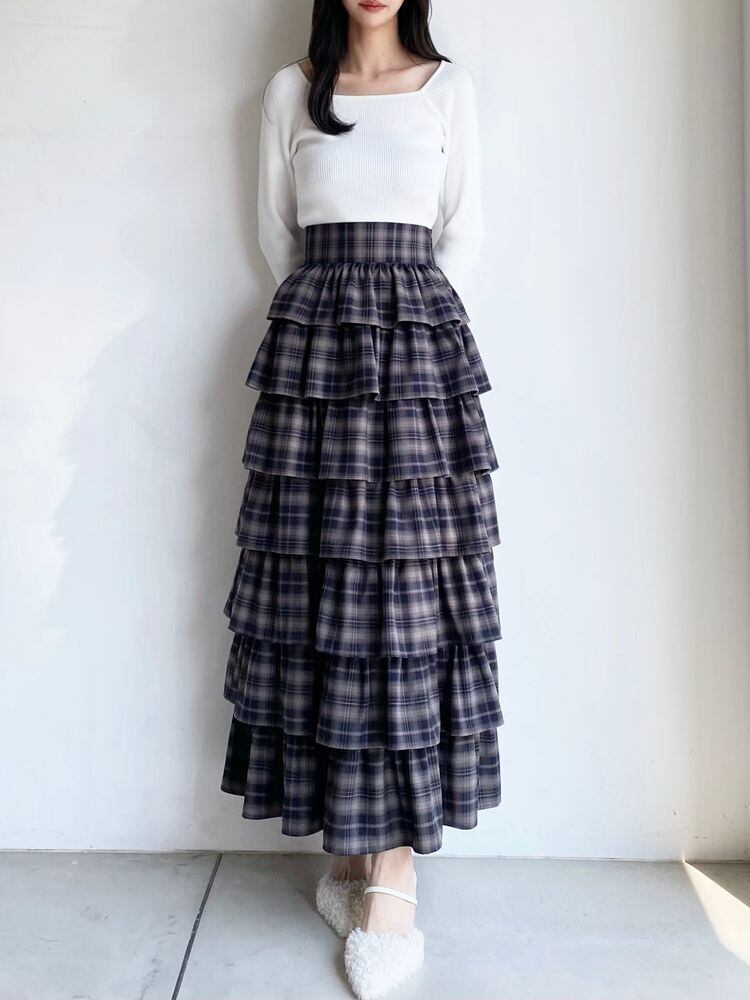 ボリューム感のあるフリルを重ねた目を惹くスカート