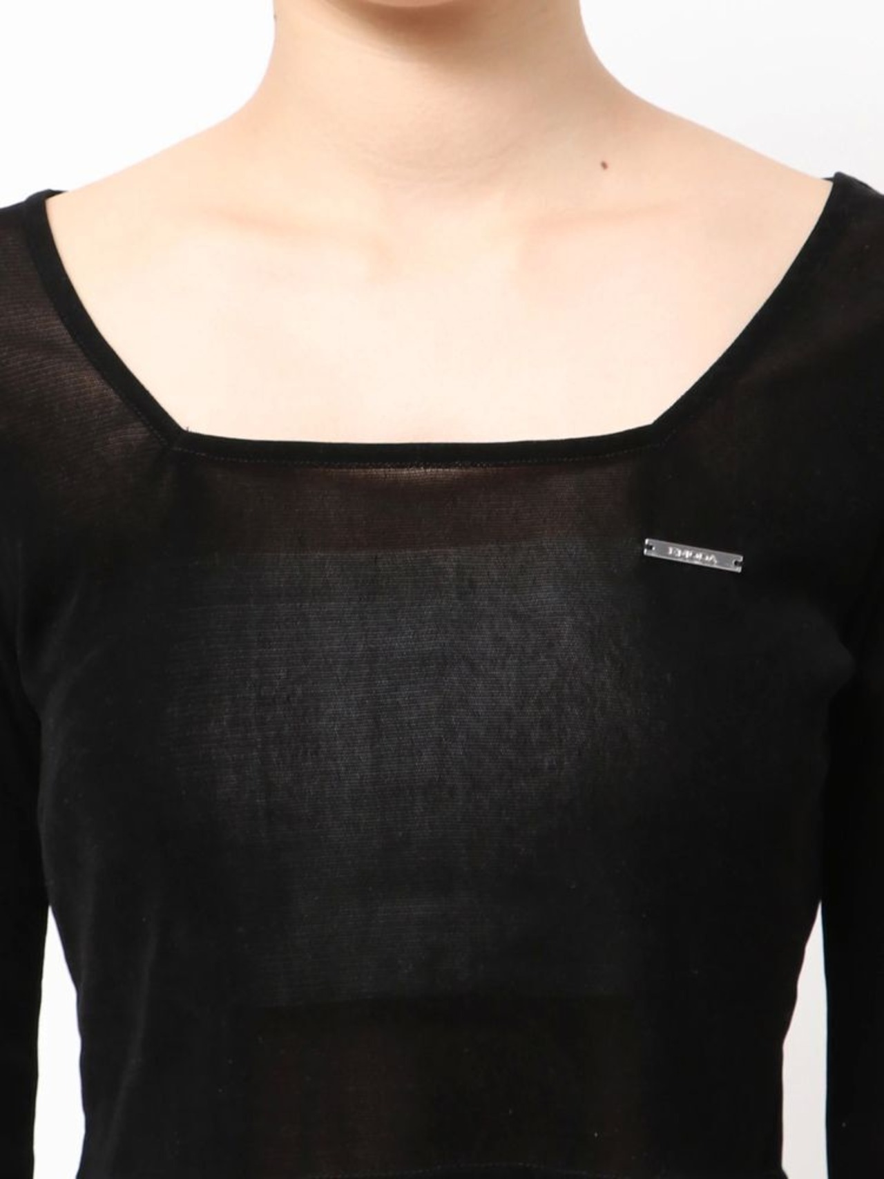 スクエアネックでデコルテが綺麗に見えるよう設計。