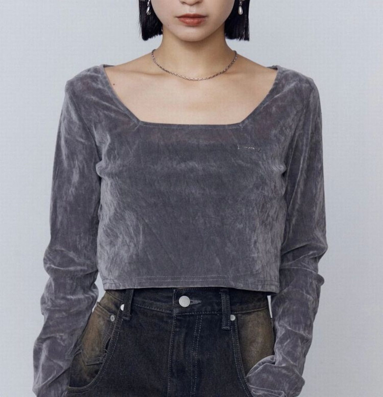 【EMODA】シアーベロアプレートクロップトップ