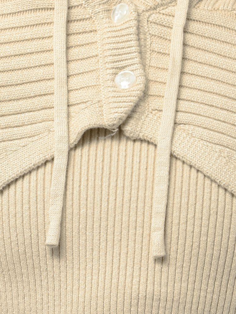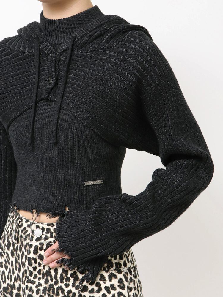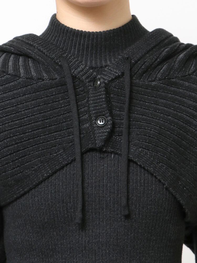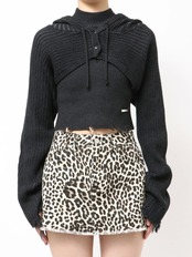 フードをポイントにしたボレロは、オフショルで肩を少し見せる着用がおすすめです。