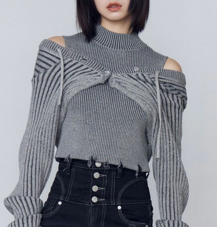 クロップド丈ボレロとノースリーブトップスの2ピースニット