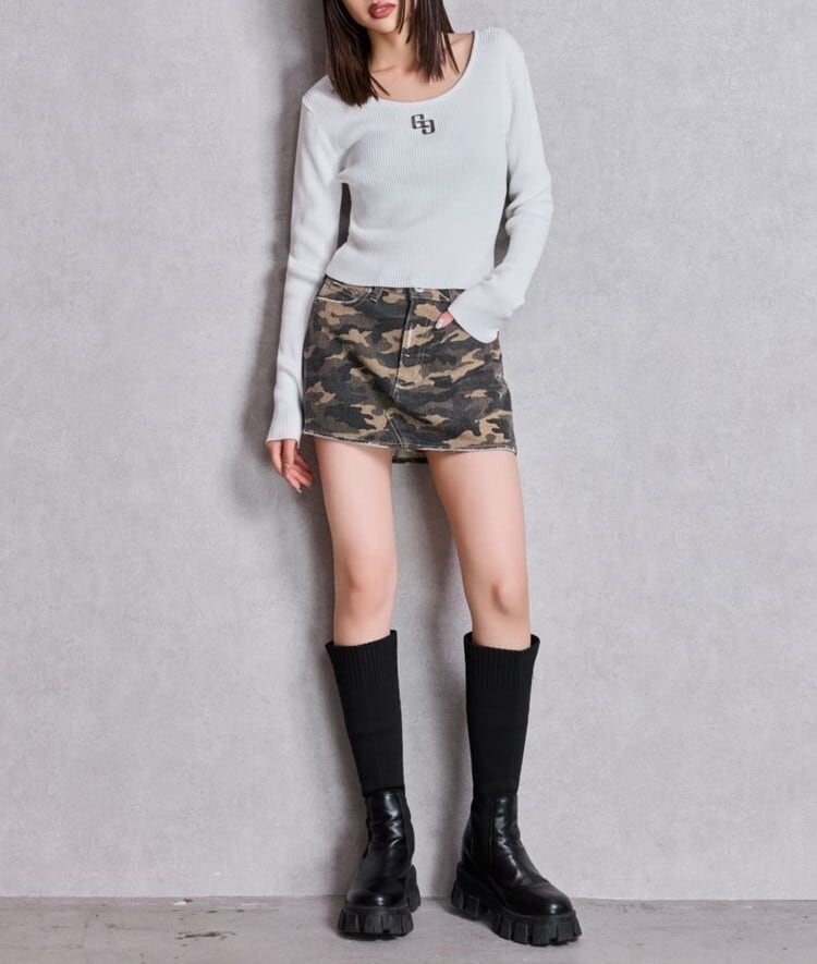 【GYDA】GGプレートlong sleeveニットトップス