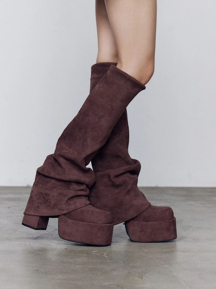 自然に広がる裾と、程よく下のボリュームが出る溜まり具合が脚を綺麗に見せてくれる1本です。履くだけで足元が映える厚底ブーツになります。
