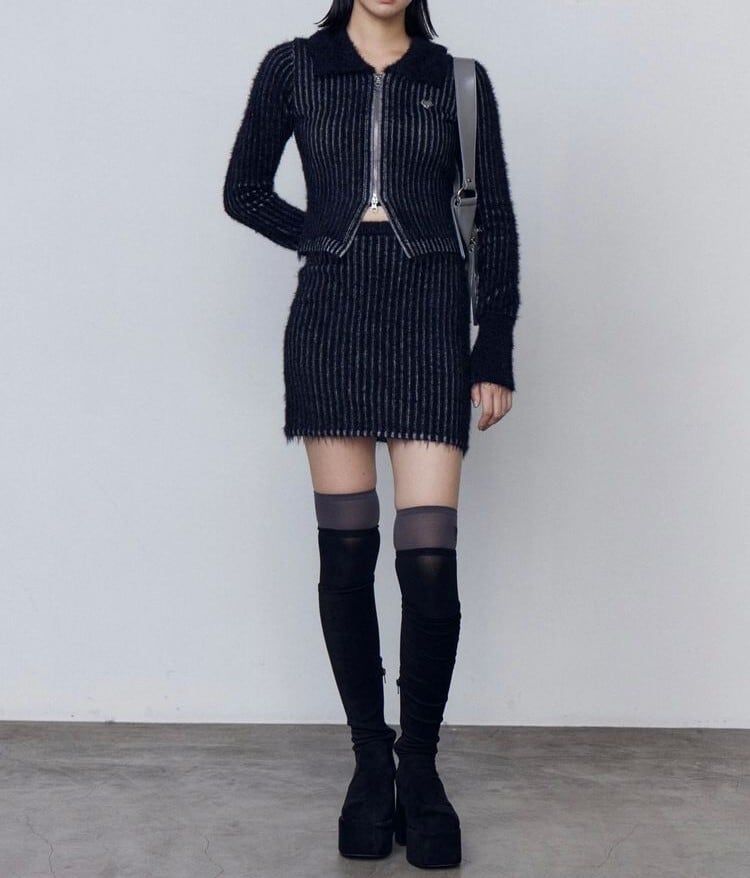 同素材のシャギープレーティングポケットスカートとのセットアップがイチオシ。