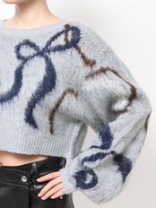 オリジナルのウェーブリボン柄が目を引くニットトップス