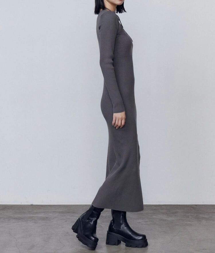 【EMODA】チョーカーギャザーフィットニットワンピース