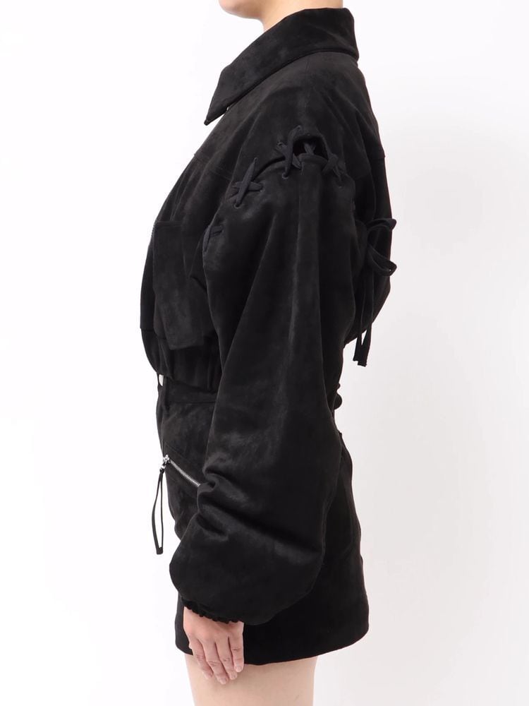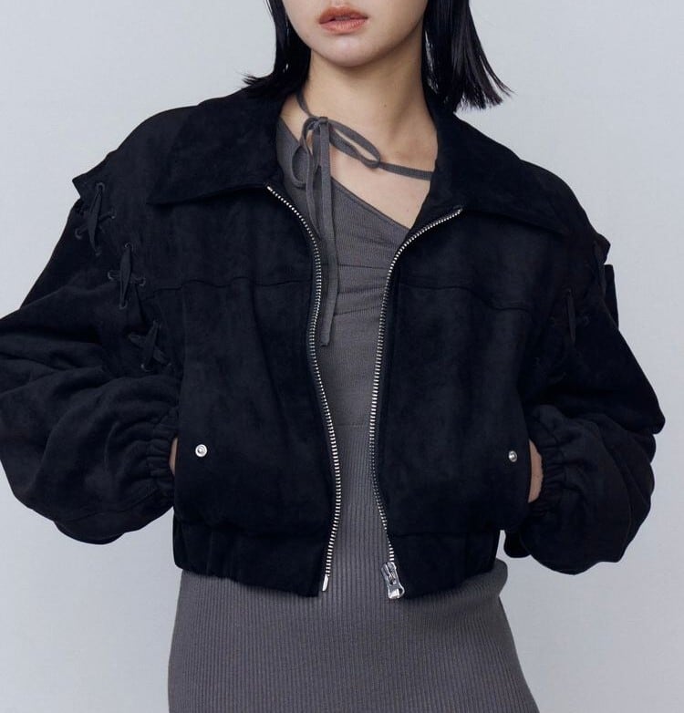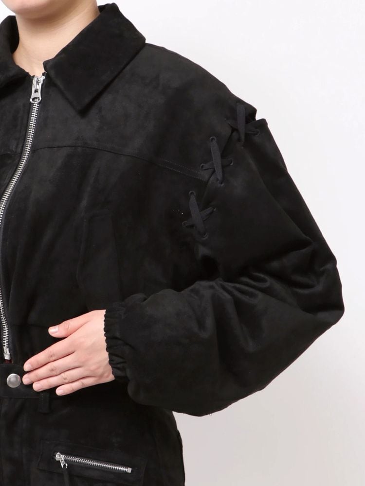 アームホールのレースアップをポイントにしたフェイクスエードブルゾン