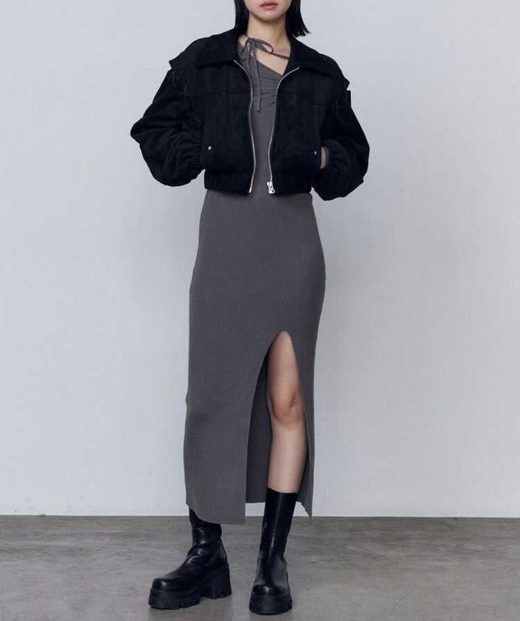 同素材のフェイクスエードミニスカートとのセットアップがイチオシです。