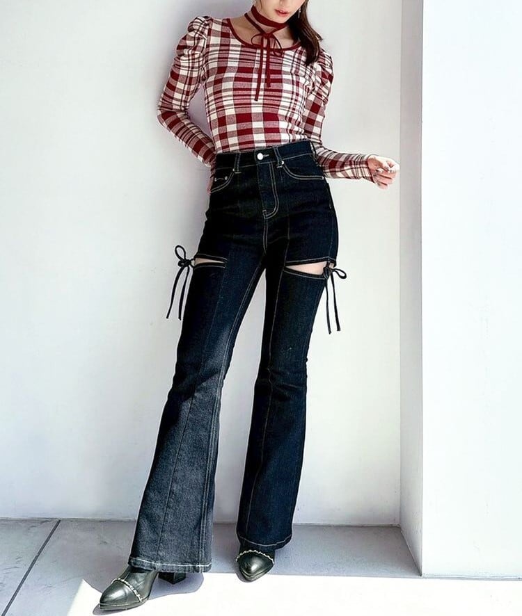 チョーカー付きなので前後お好きな雰囲気で結ぶことができ、