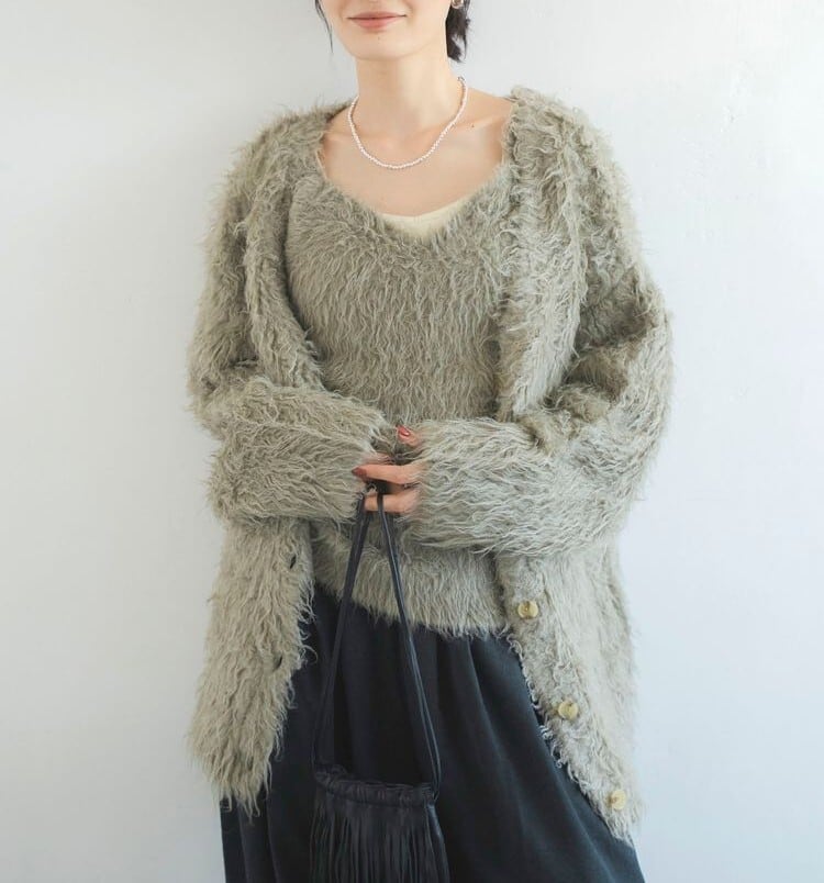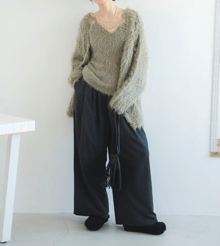 起毛感のある素材が印象的でこの秋冬らしい1着。