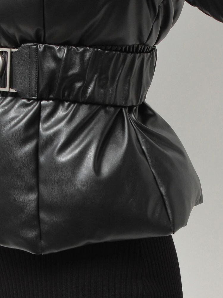 オリジナルロゴをウエストベルトに使用したフェイクレザーショートダウンコートです。
