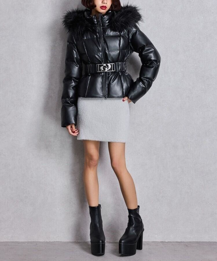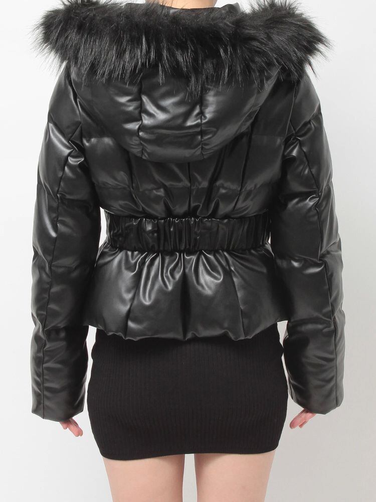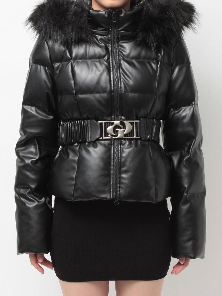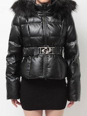 【GYDA】GDベルト付きフェイクレザーショートダウンコート