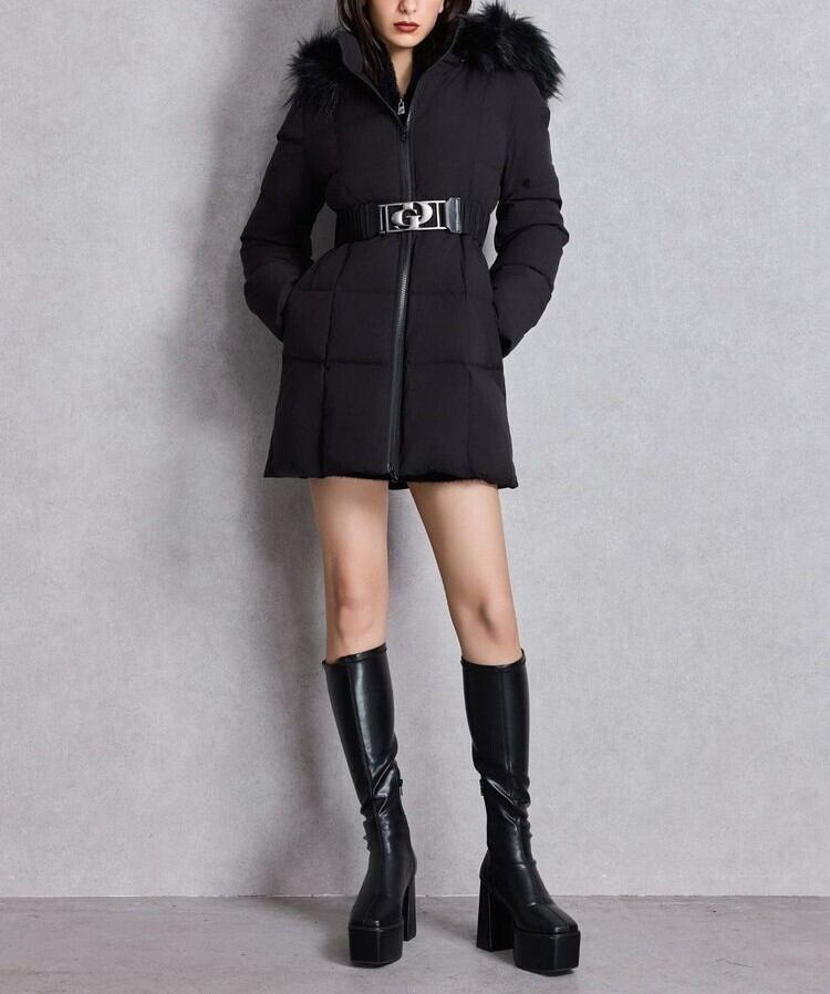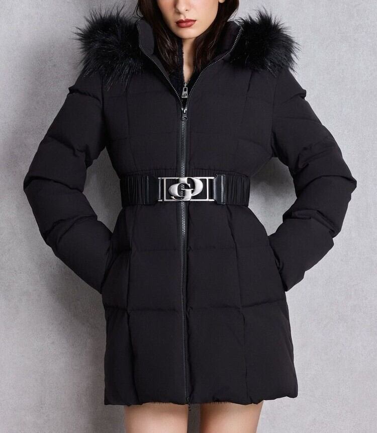オリジナルロゴをウエストベルトに使用したロングダウンコートです。
