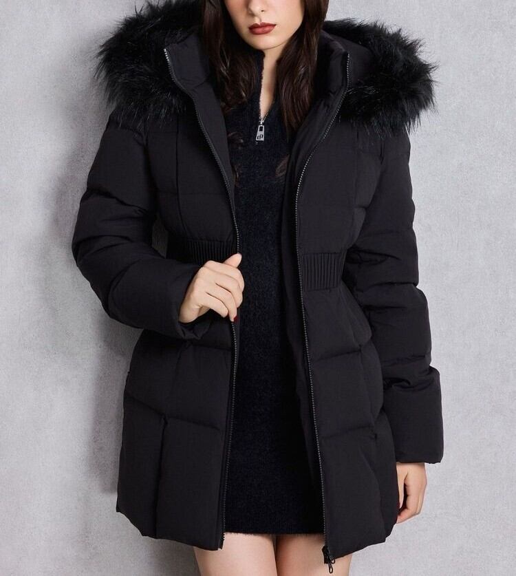ニットワンピが着れるくらいの細身に仕上げていて贅沢に使ったダウンに反して細見えしてくれます。