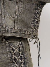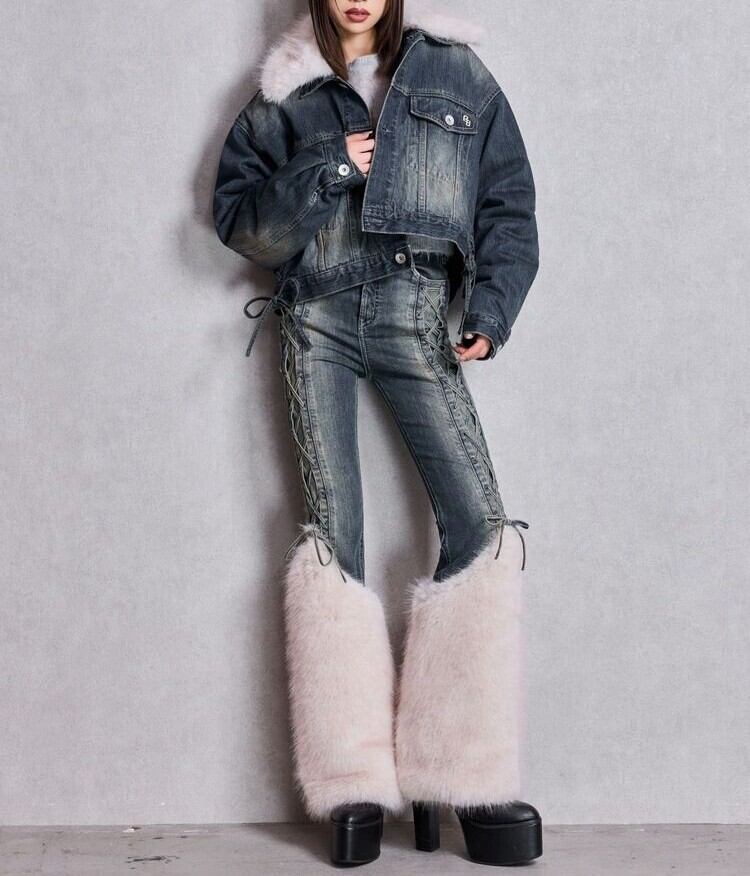 ハイウエスト LEG 2WAY ECO FURサイドレースアップフレアデニムパンツ