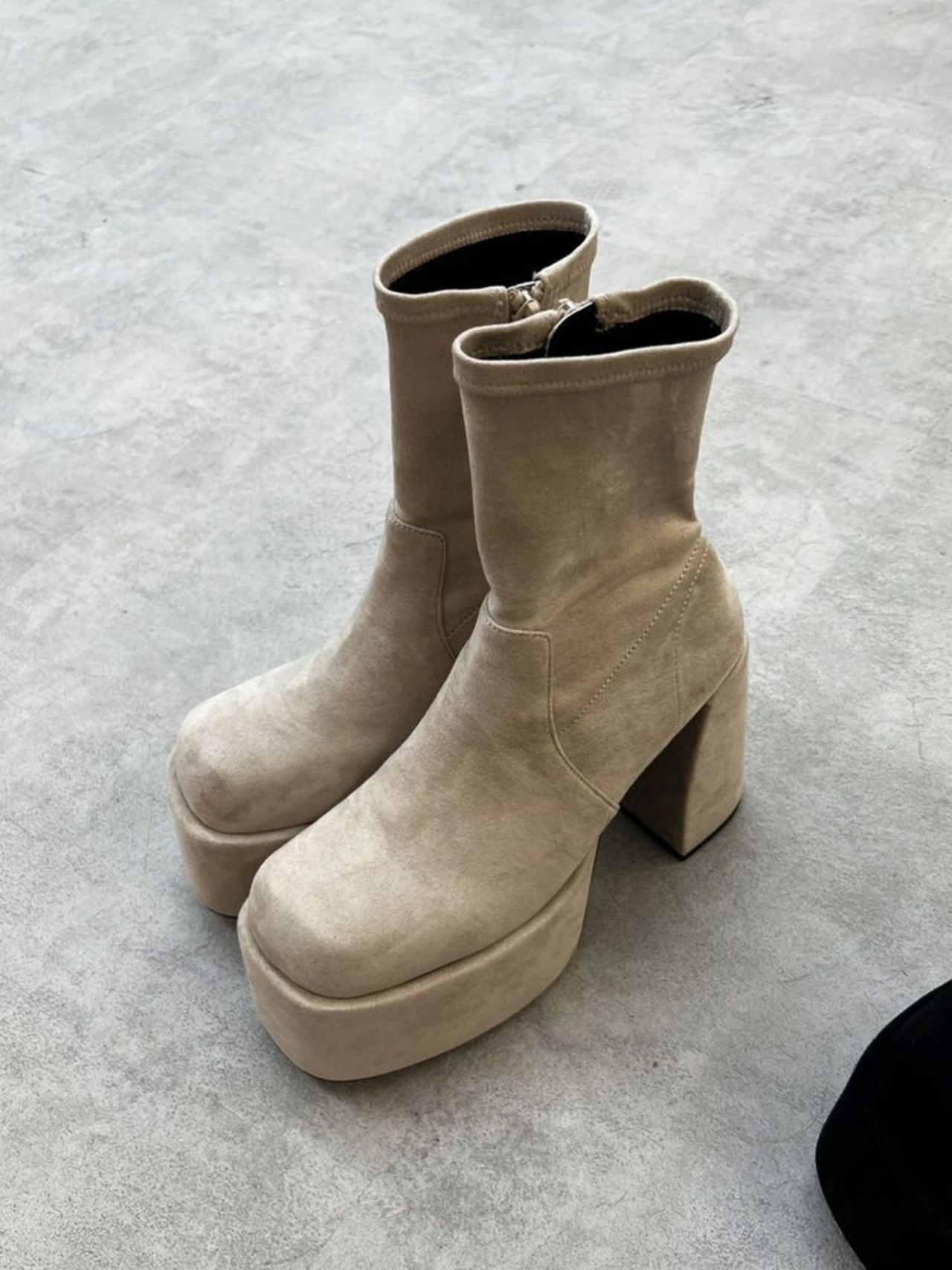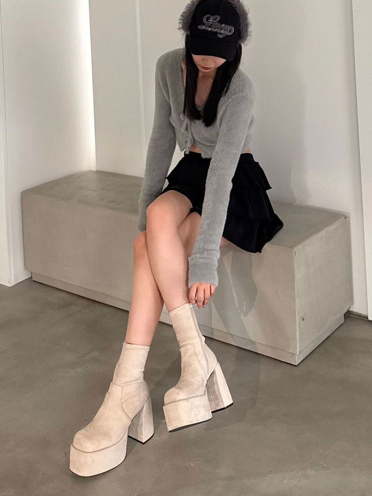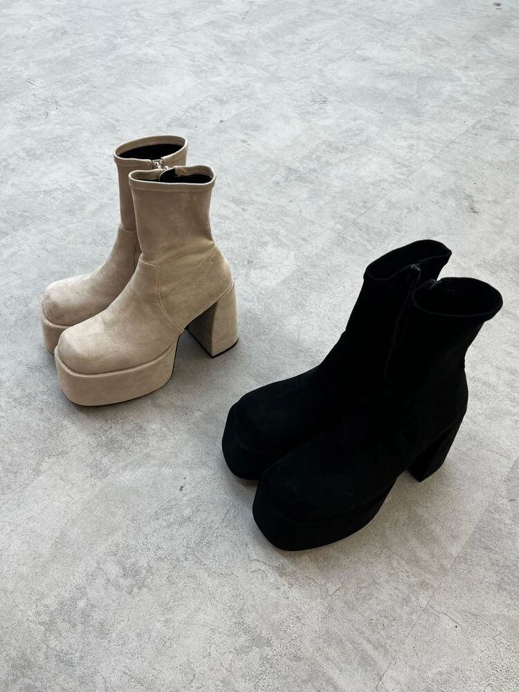 ぷっくりとしたつま先のシルエットとボリューム感・ソックスブーツのような程よいモード感と抜け感のバランスが魅力的な一足です。