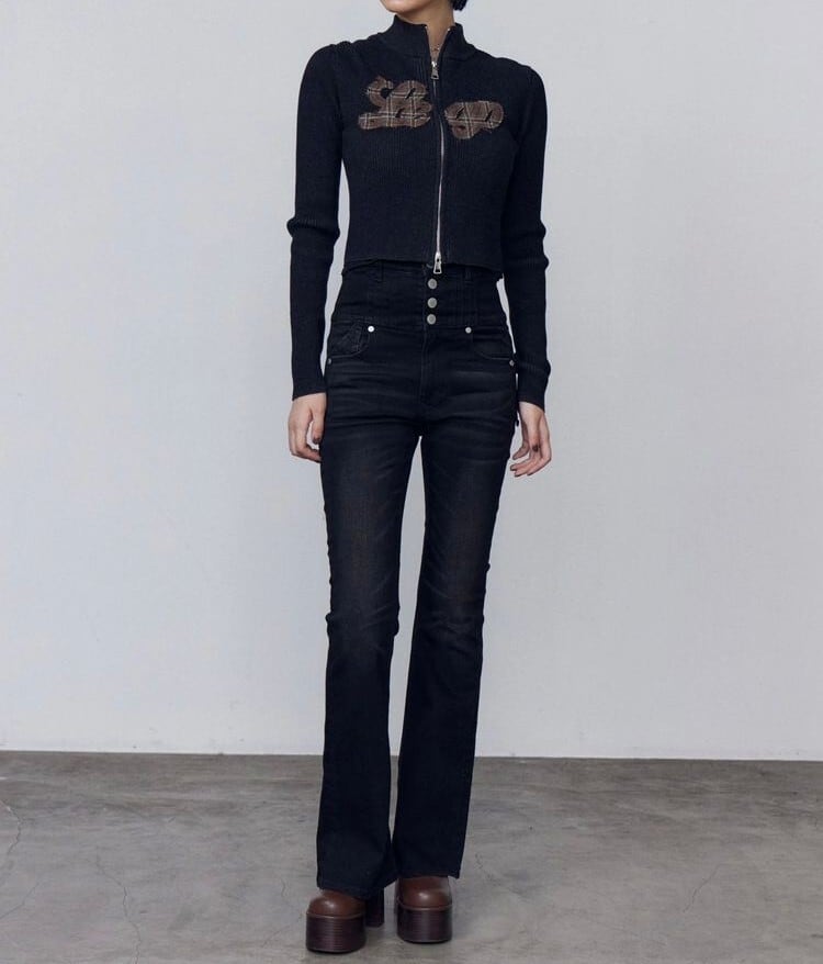 後ろのレースアップデザインがポイントなので、ショート丈とのスタイリングがおすすめ。