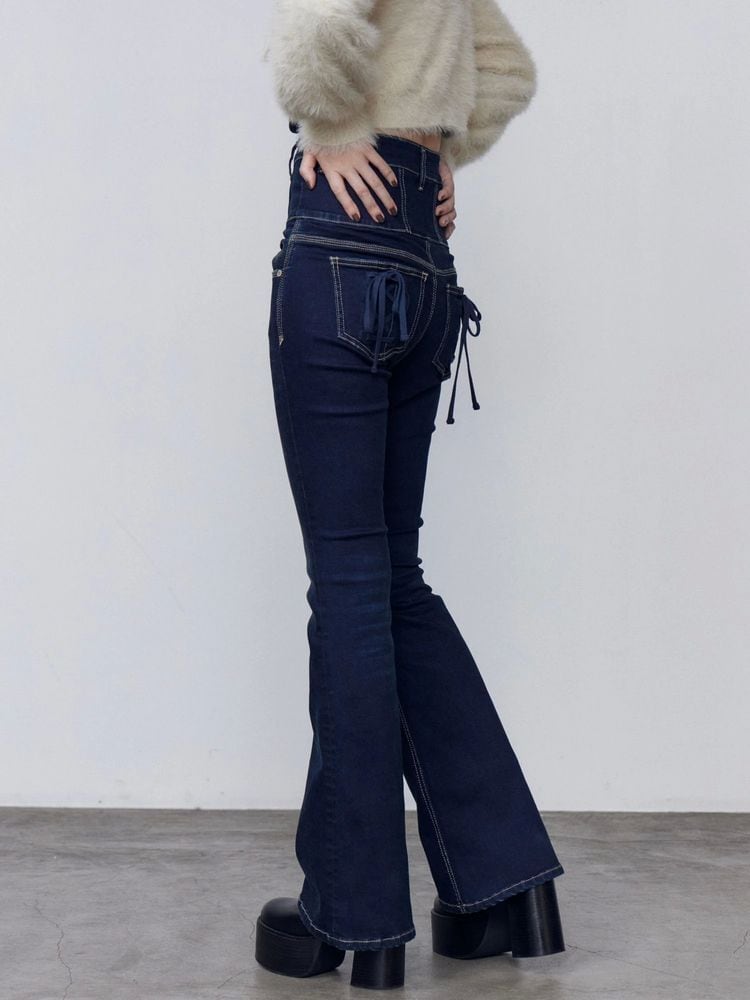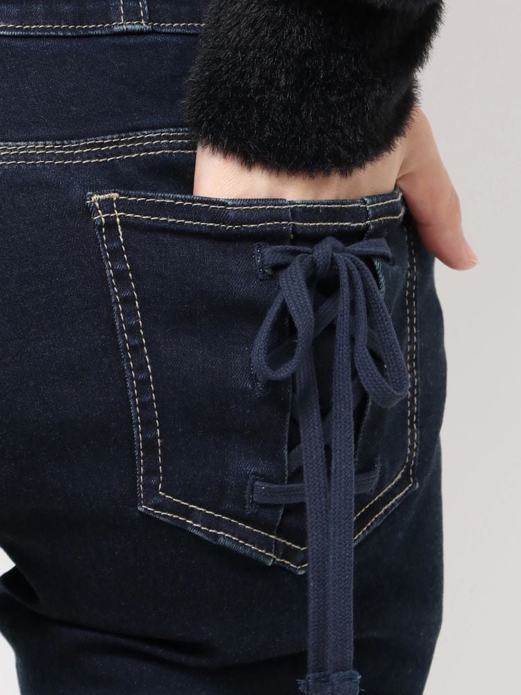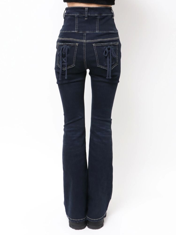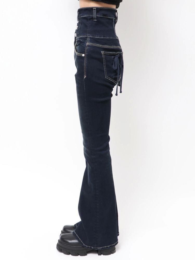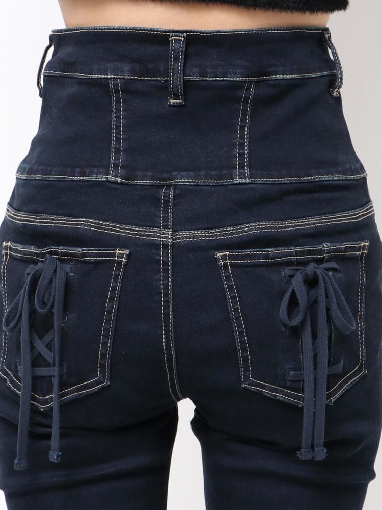 レースアップデザインの後ろポケットがポイントで、シンプルなフロントとは対照的に後ろ姿で遊び心を演出してくれる1本です。