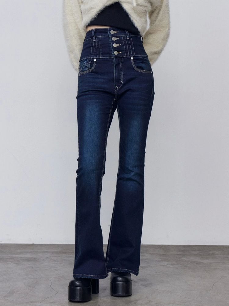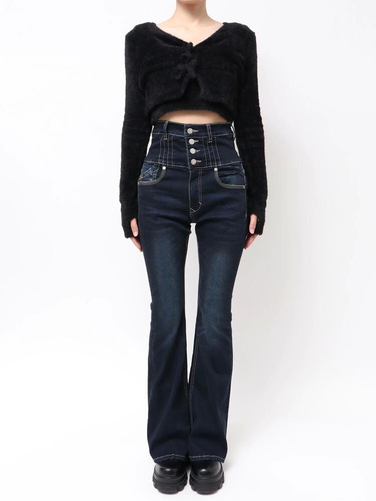 ストレッチ性に優れたストレッチデニム素材を使用しておりボディラインに心地よくフィットしてくれます。