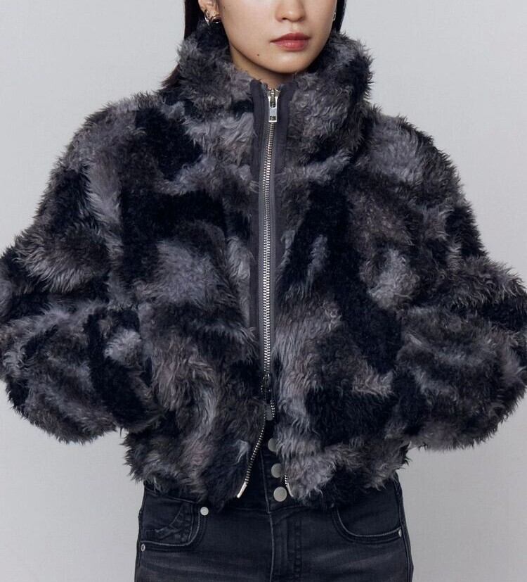 ボア素材ですが、コンパクトなシルエットなので着回しのしやすいアウターです。