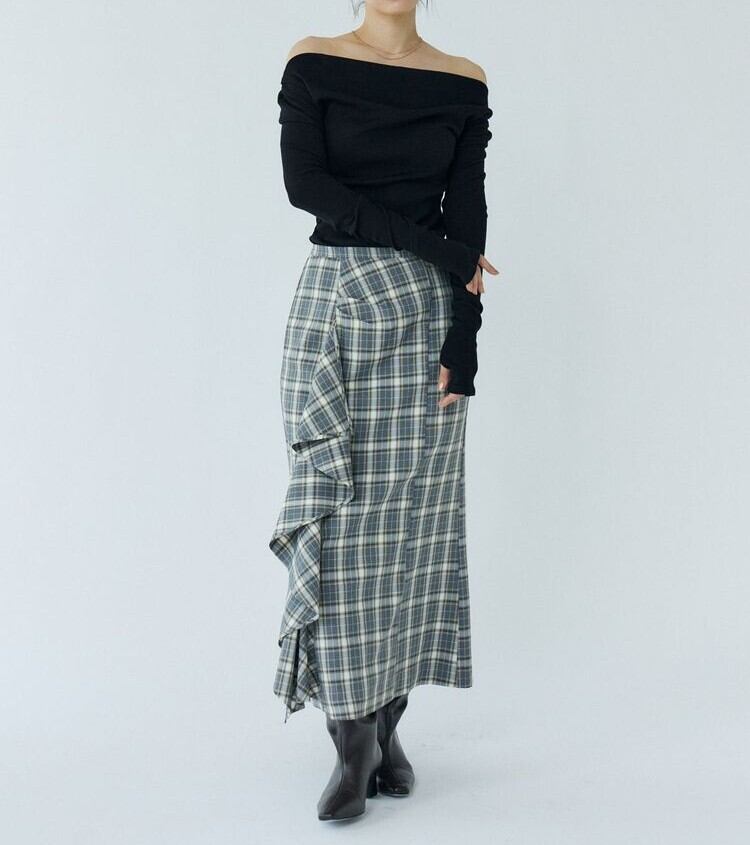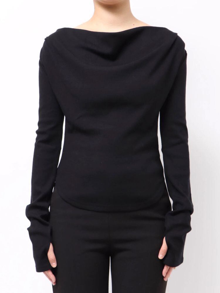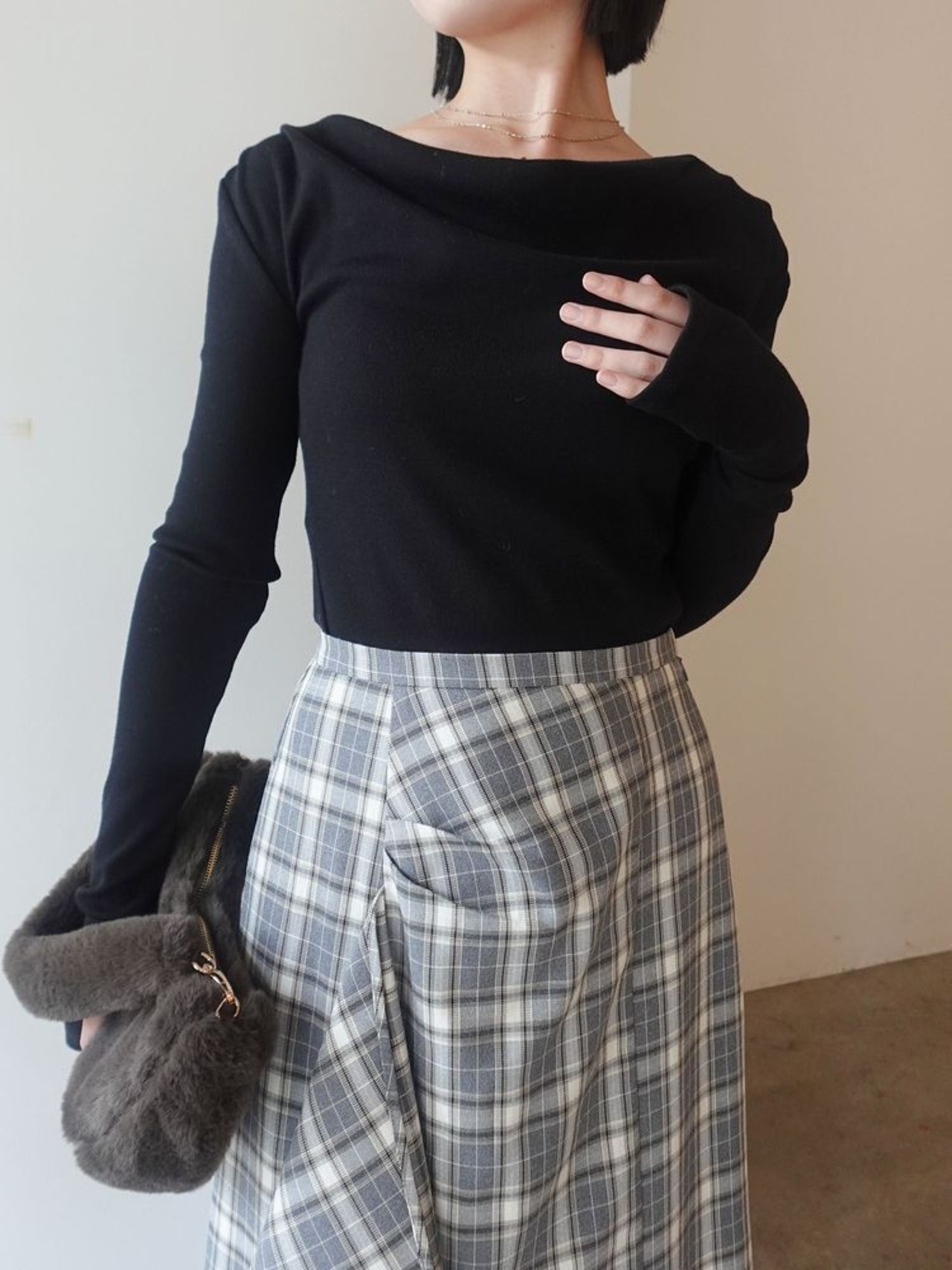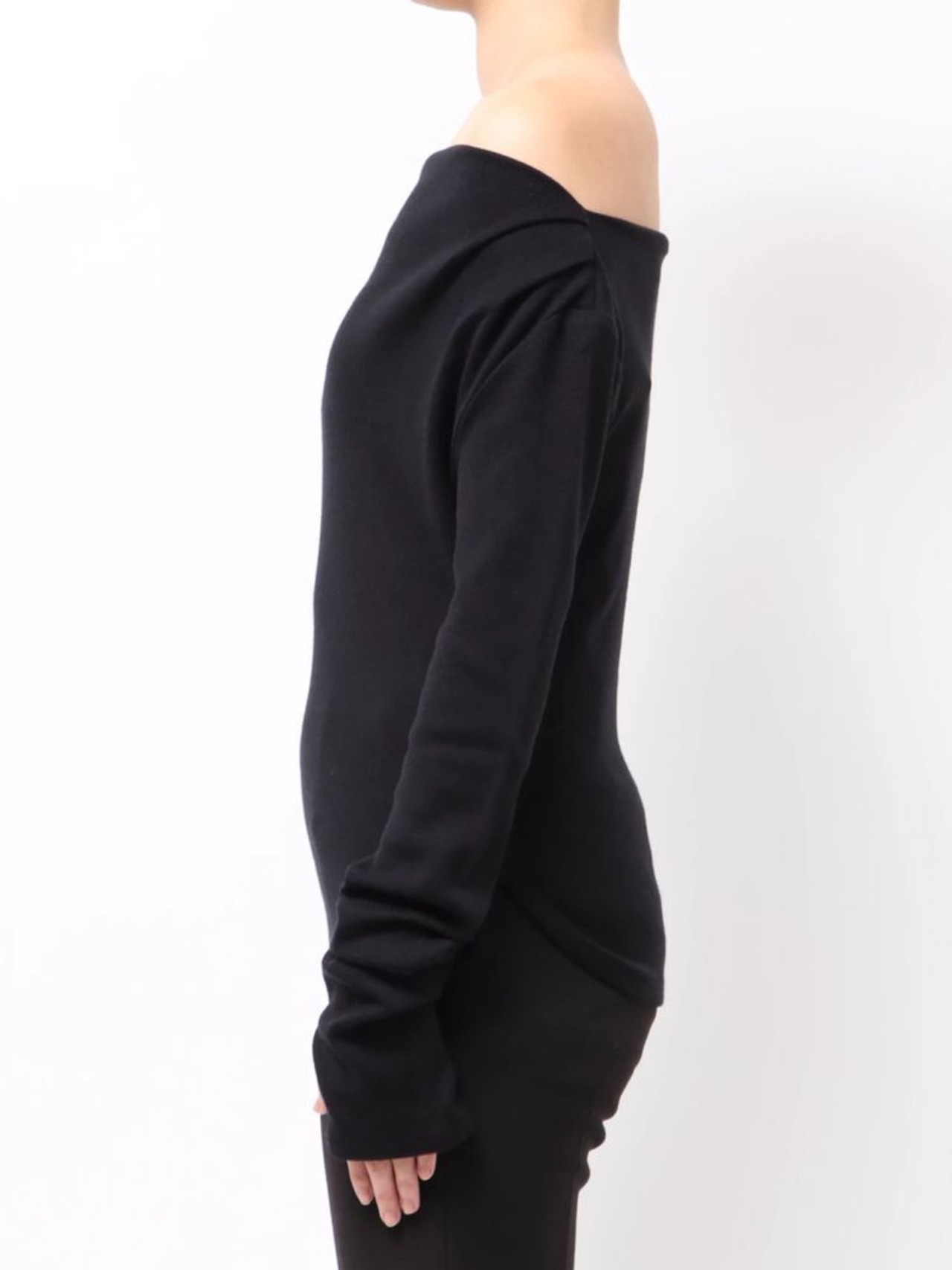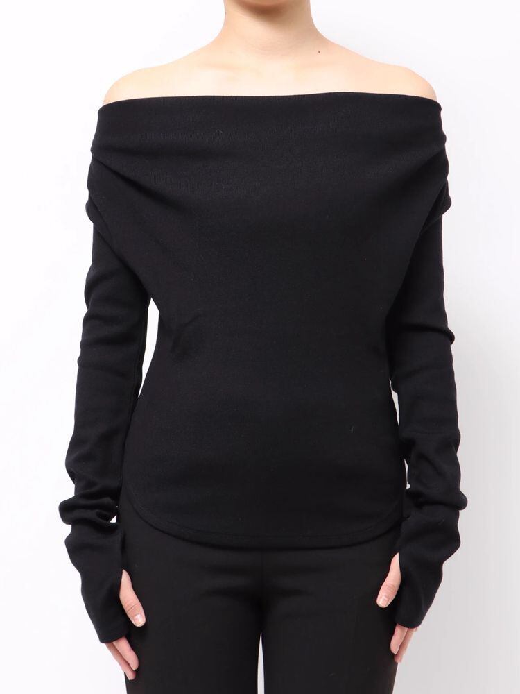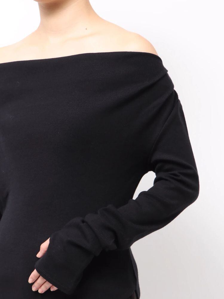 柔らかく伸縮性の高いカットソー素材を使用したオフショルトップス。