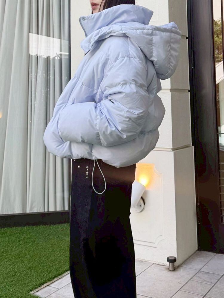 パウダリーな生地とフカフカなダウン、袖口に隠れたリブで着やすさと防寒を兼ね備えています。淡いカラーでもウォッシャブルだから取り扱いやすさも◎。